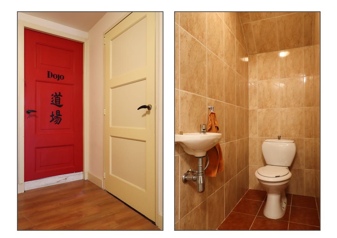 Ook de tweede verdieping biedt een overvloed aan ruimte. Hier bevindt zich een zeer grote multifunctionele ruimte, momenteel in gebruik als sportzaal, maar geschikt voor uiteenlopende doeleinden zoals atelier, studio of extra woonruimte. Daarnaast is er een ruime slaapkamer met eigen badkamer (douche en wastafel) en een separaat toilet op de overloop.