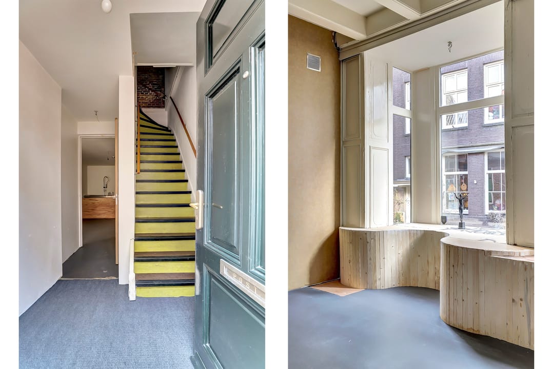 Via de entree aan de voorzijde kom je binnen in de hal met meterkast en trapopgang naar de bovenliggende verdiepingen. Direct bij binnenkomst voel je de historie van het pand.