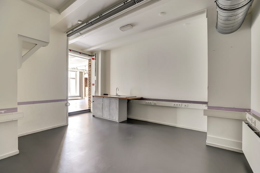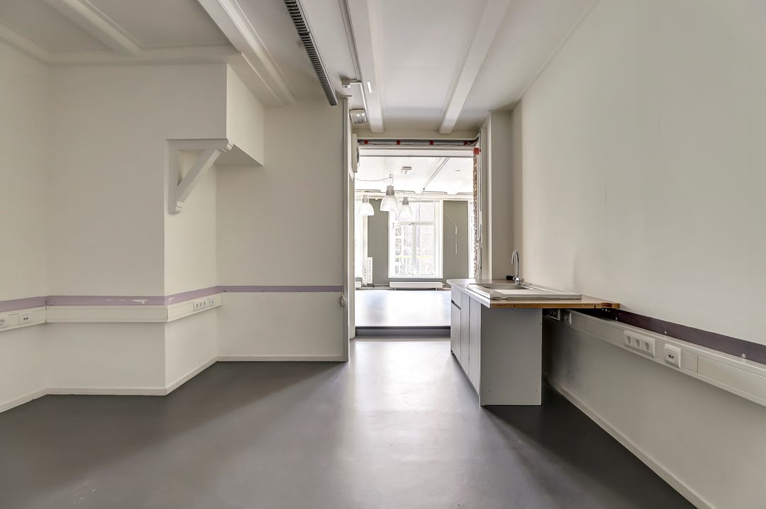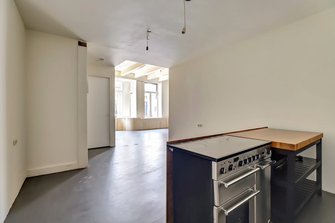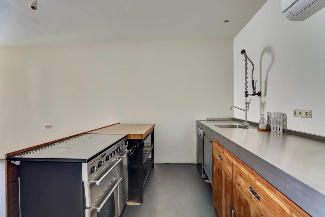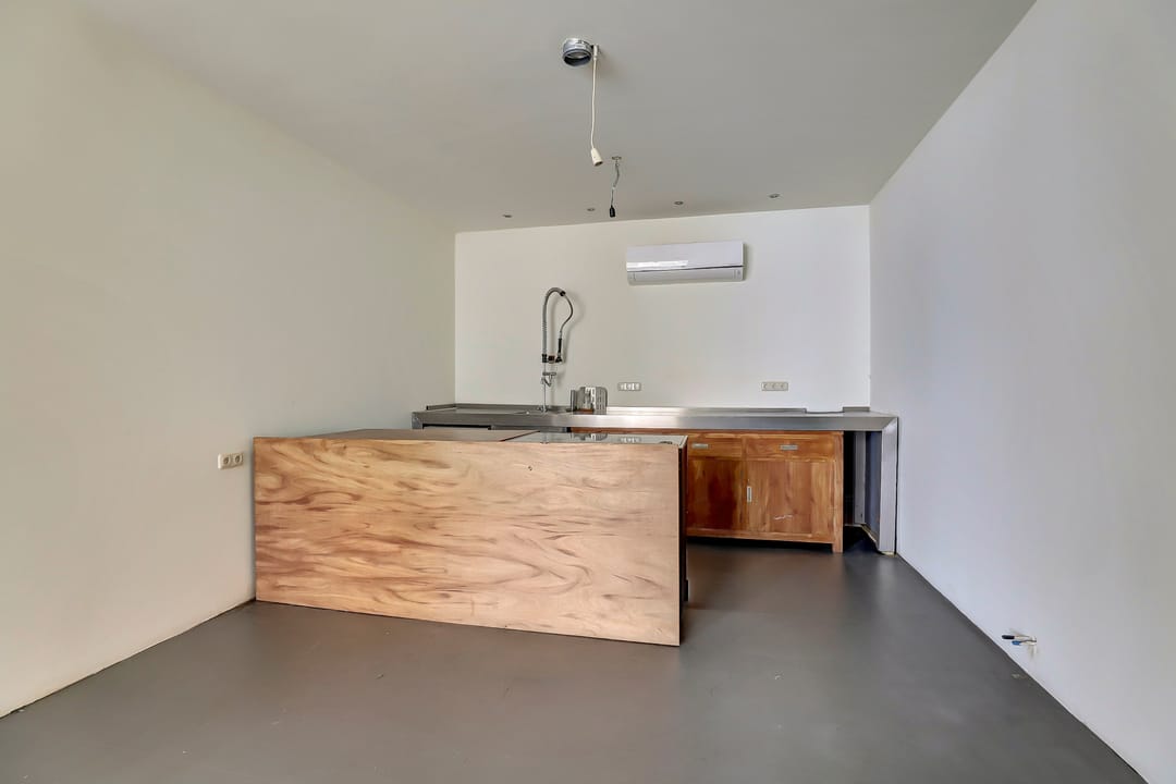 Aan de achterzijde is de keuken gesitueerd. Deze ruimte is praktisch ingedeeld en vormt een duidelijke scheiding tussen het woonwerk en kookgedeelte. Door de lengte van het pand ontstaat een prettige en functionele indeling met diverse gebruiksmogelijkheden.