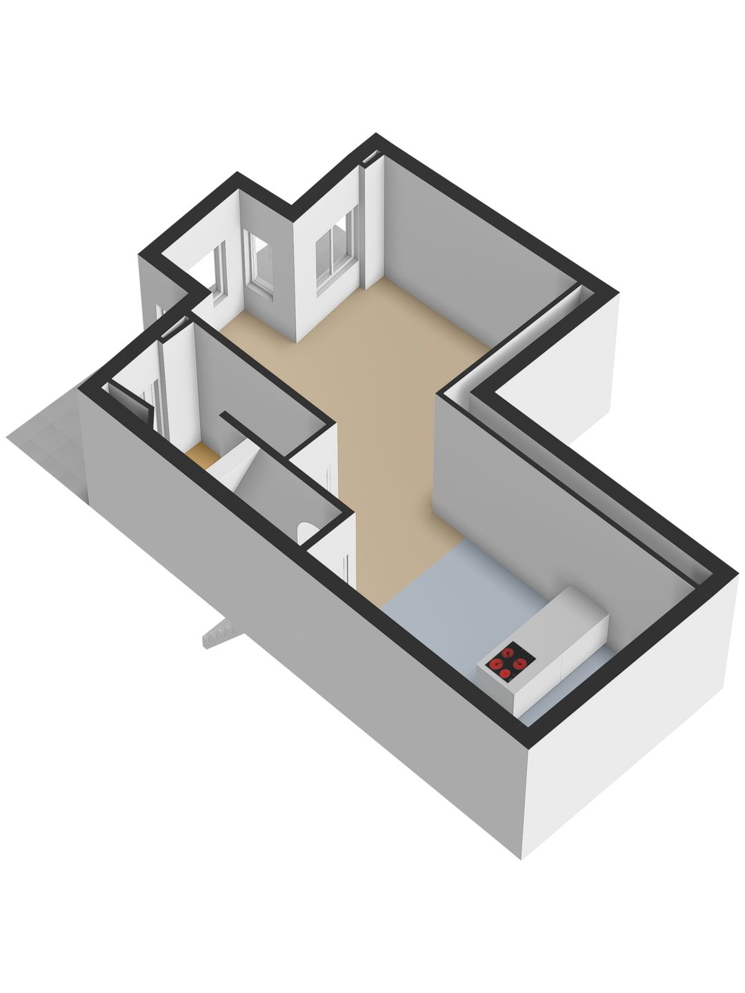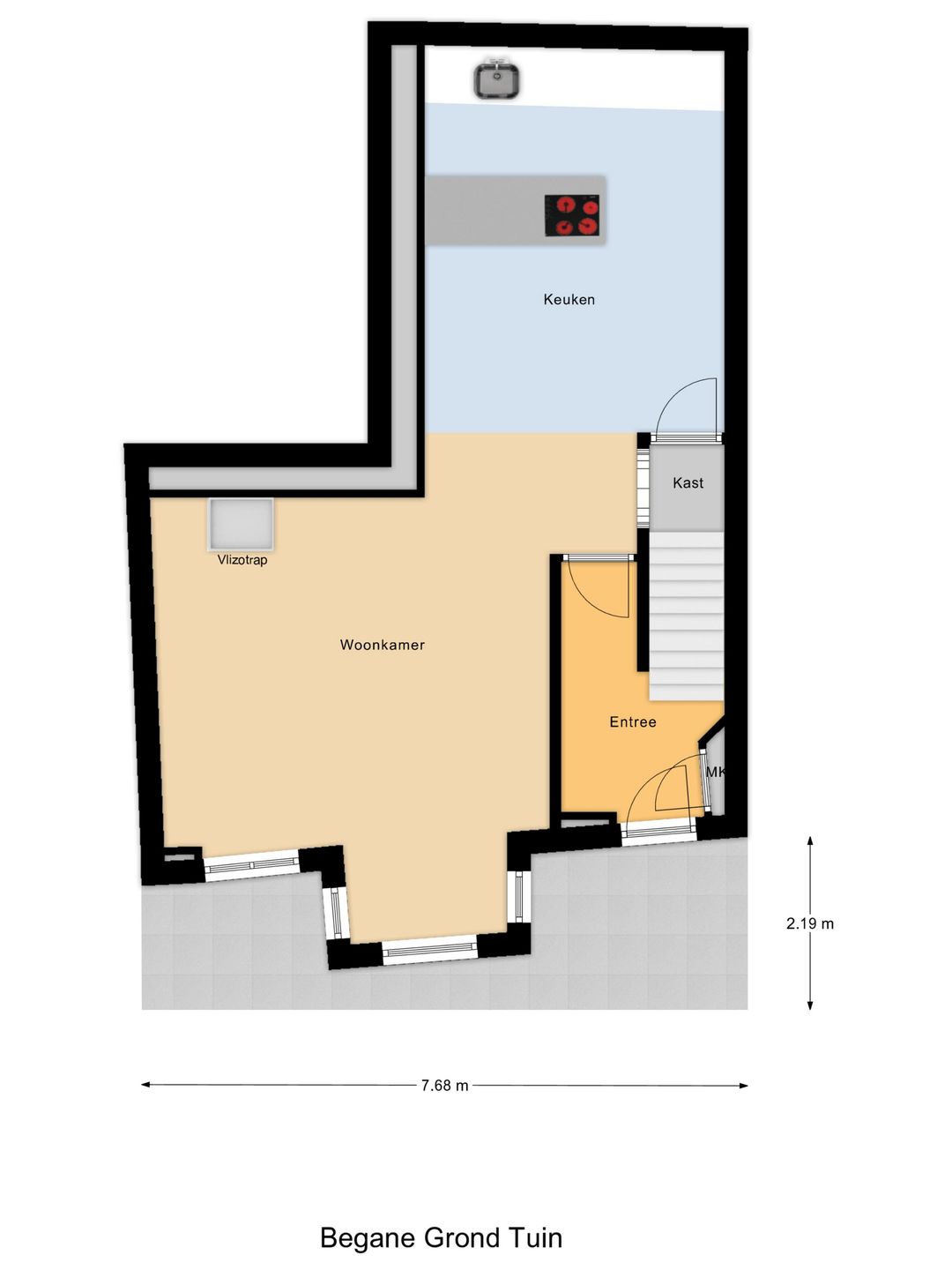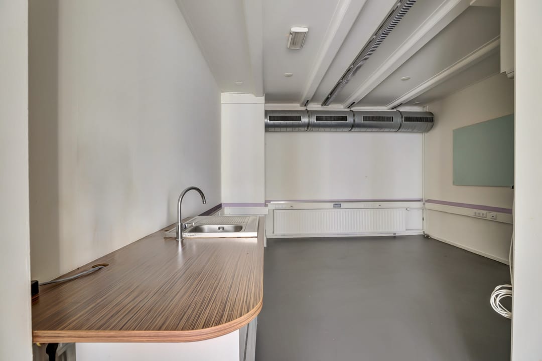 Aan de achterzijde is de keuken gesitueerd. Deze ruimte is praktisch ingedeeld en vormt een duidelijke scheiding tussen het woonwerk en kookgedeelte. Door de lengte van het pand ontstaat een prettige en functionele indeling met diverse gebruiksmogelijkheden.