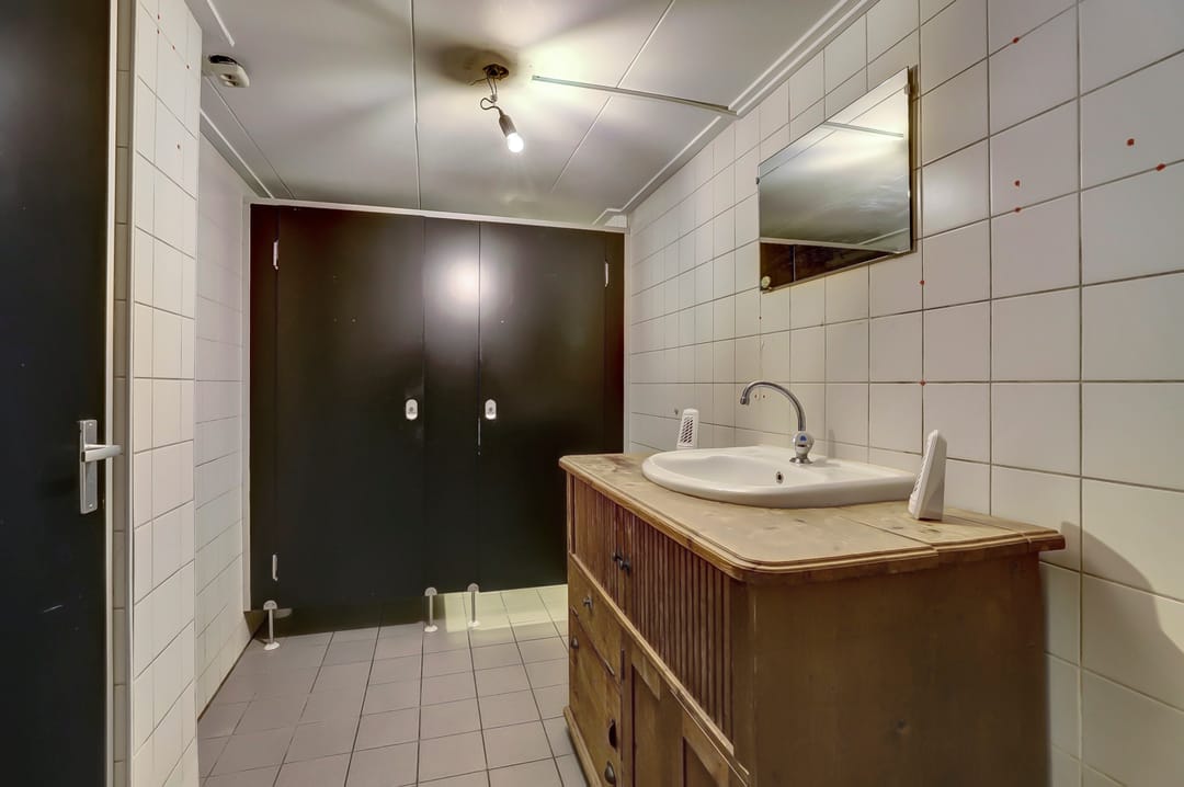 De eerste kelderruimte is voorzien van sanitaire voorzieningen, waaronder een douche, wastafel en een aparte toilet. Via een vlizotrap bereik je de tweede kelderruimte, die volop mogelijkheden biedt voor extra opslag bijvoorbeeld voor voorraad of overige materialen.