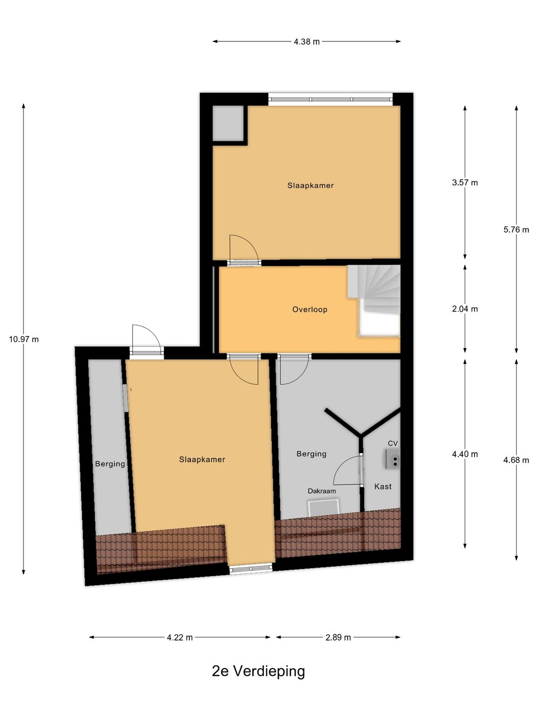 De tweede verdieping beschikt over twee slaapkamers en meerdere bergruimten. De grootste slaapkamer is ruim opgezet. De tweede slaapkamer is eveneens goed bruikbaar als slaap, werk of hobbykamer. Daarnaast is er een aparte berging met opstelling van de cv-installatie en extra kastruimte.