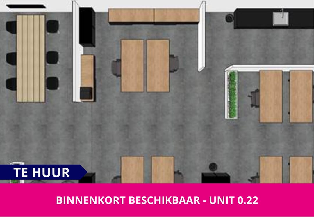 Er zijn volop mogelijkheden voor de huur van kantoorruimte. U kunt huren voor een vaste termijn of per uur. Nu hebben we de volgende ruimtes te huur (prijzen inclusief huur, voorschot service- en energiekosten en excl. btw):