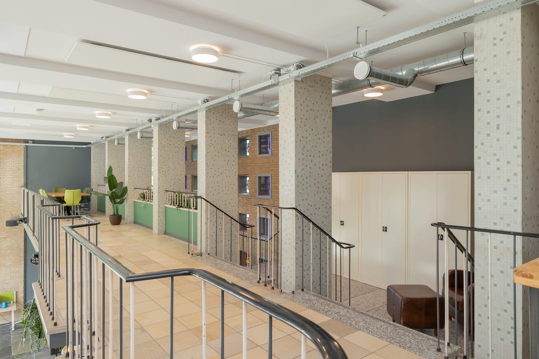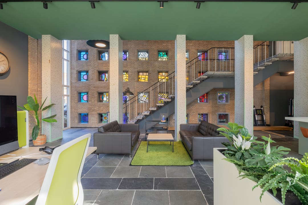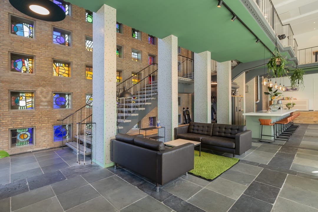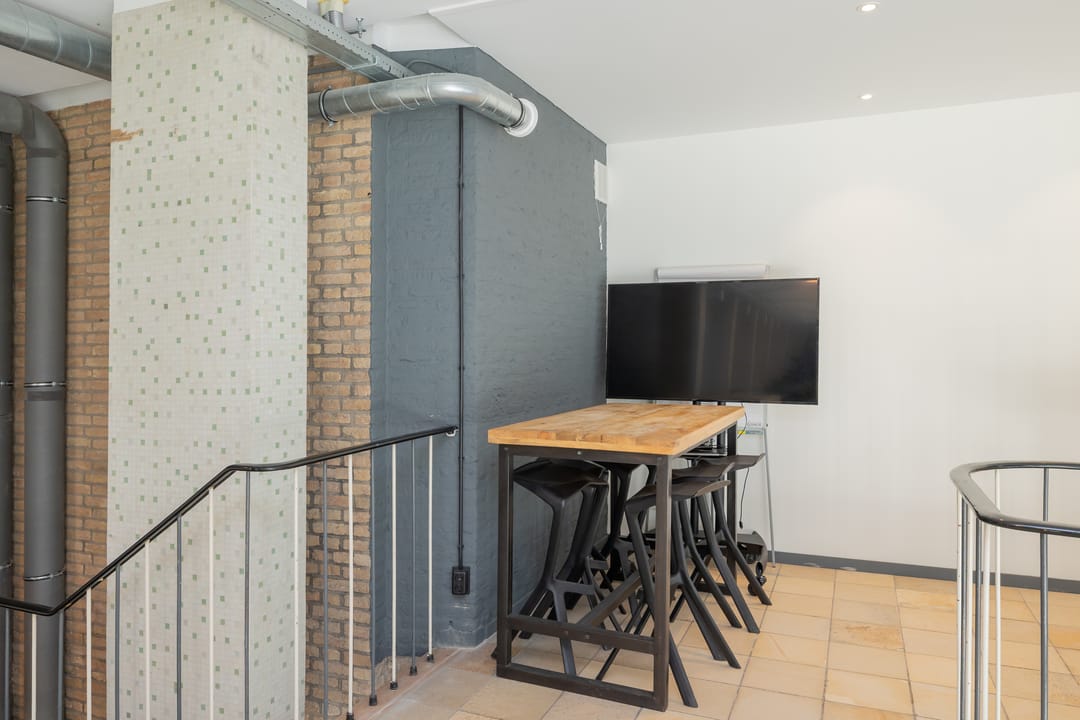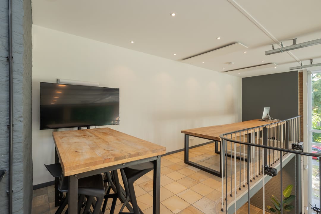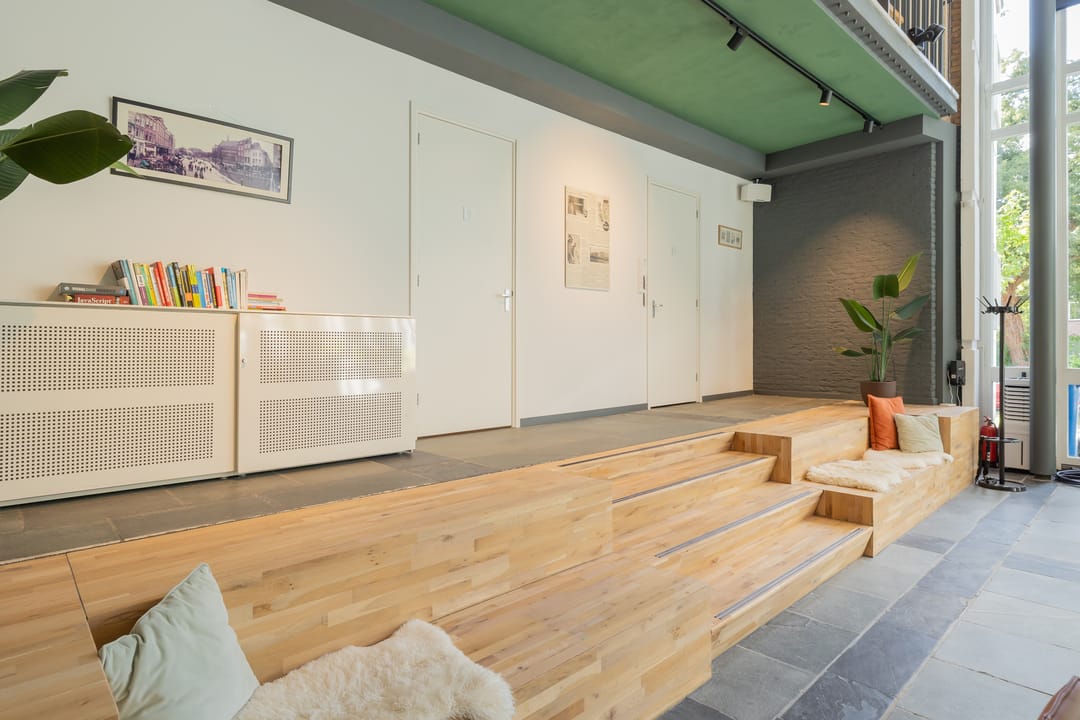 In de voormalige Nijverheidsschool bieden wij deze zeer karakteristieke ruimte aan. Mede vanwege de enorme raampartij in de voorgevel is het een lichte en plezierige ruimte. Enkele kenmerken zijn onder andere de luxe afwerking en de in het oog springende vide bij binnenkomst die bereikbaar is via een robuuste maar sierlijke trap. De glas in beton details in de achtergevel maken dit geheel af. Kortom een unieke ruimte waarmee u uw organisatie maximaal kunt profileren.