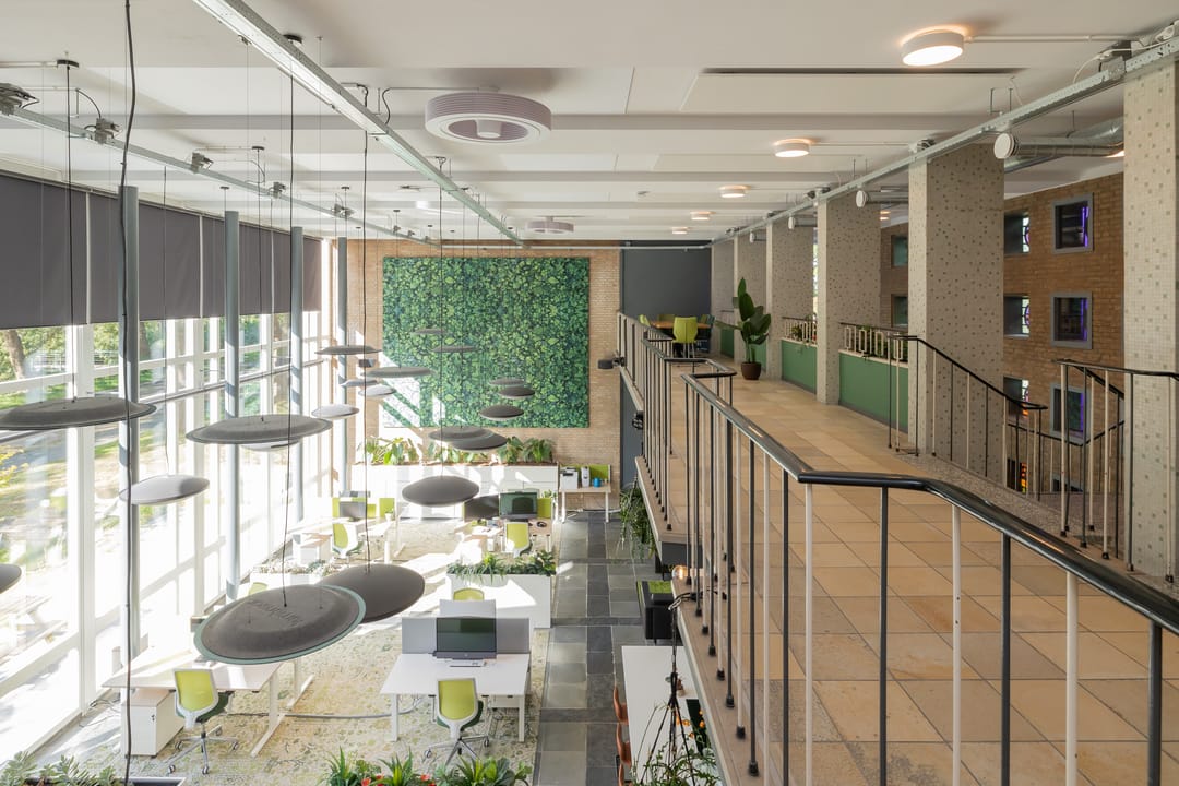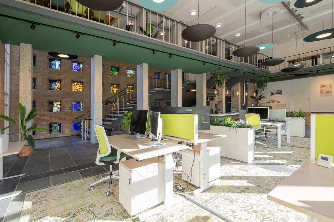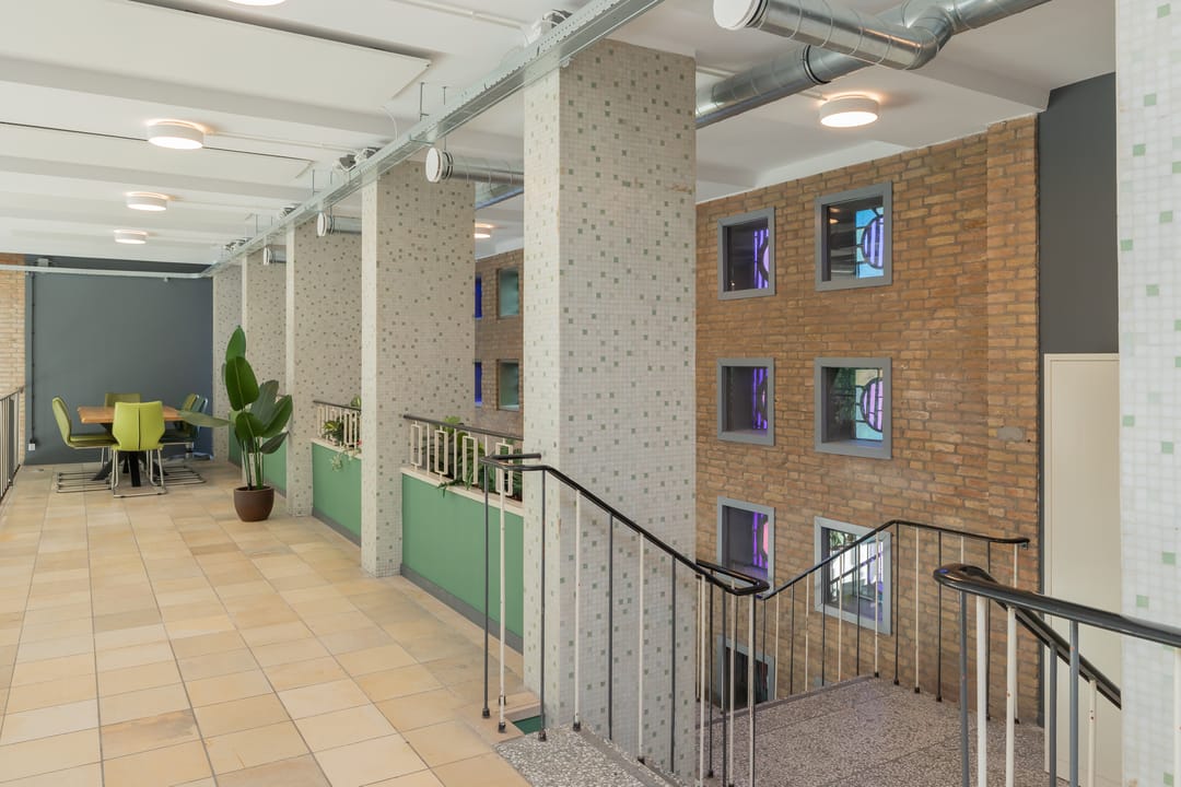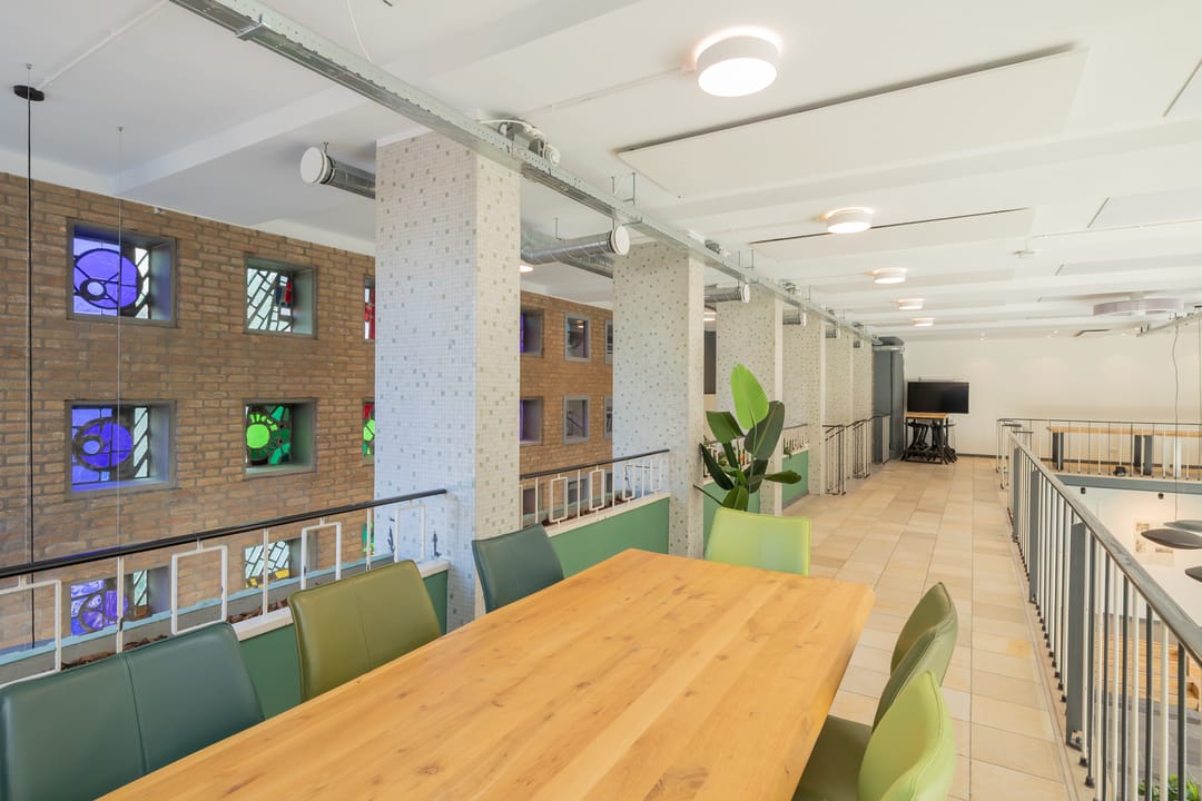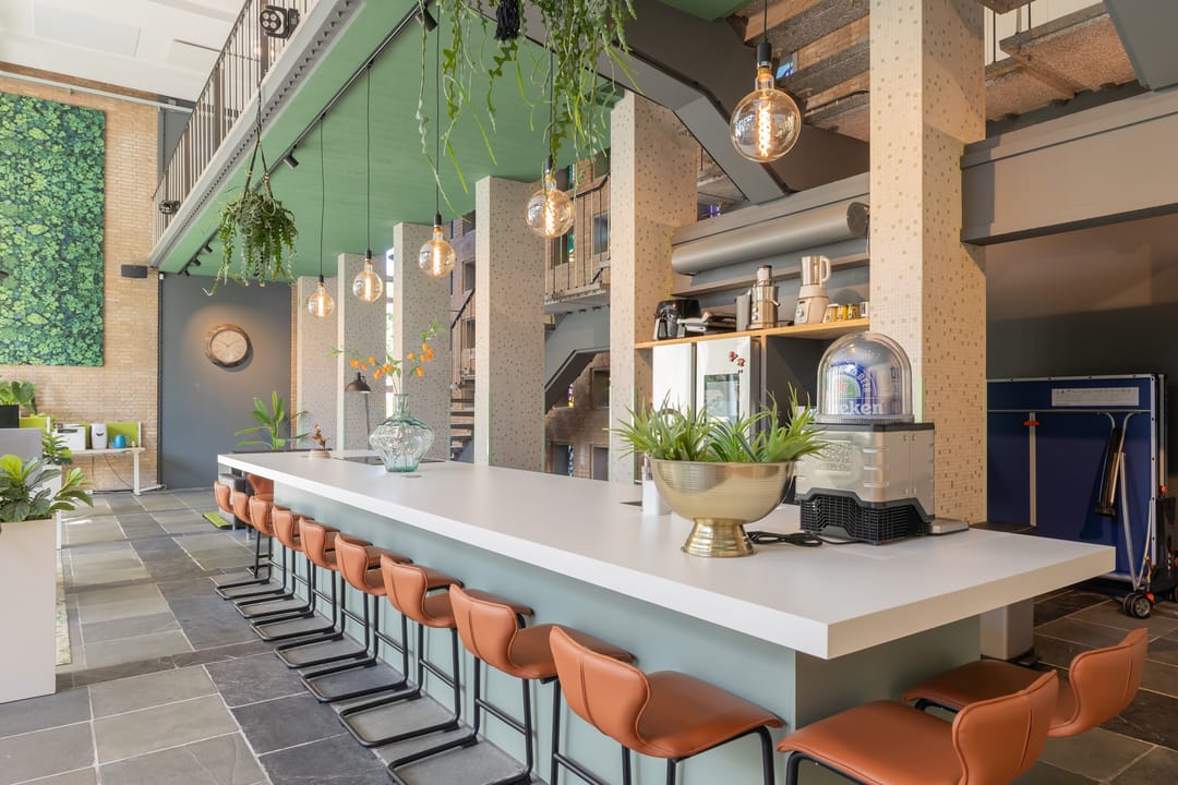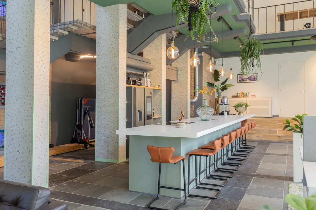 In de voormalige Nijverheidsschool bieden wij deze zeer karakteristieke ruimte aan. Mede vanwege de enorme raampartij in de voorgevel is het een lichte en plezierige ruimte. Enkele kenmerken zijn onder andere de luxe afwerking en de in het oog springende vide bij binnenkomst die bereikbaar is via een robuuste maar sierlijke trap. De glas in beton details in de achtergevel maken dit geheel af. Kortom een unieke ruimte waarmee u uw organisatie maximaal kunt profileren.