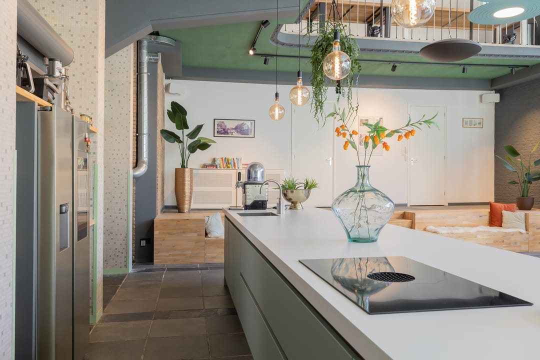 - luxe en moderne keuken met hoogwaardige apparatuur, waaronder een Quooker, Bora-inductiekookplaat en een Amerikaanse koel- / vriescombinatie;