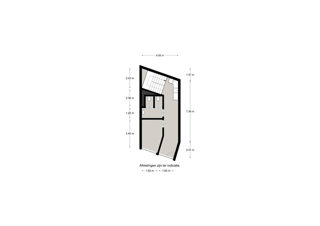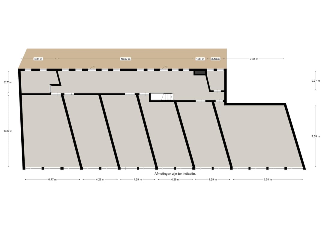 De ruimte heeft in totaal een oppervlakte van ca. 400 m² en is als volgt ingedeeld: