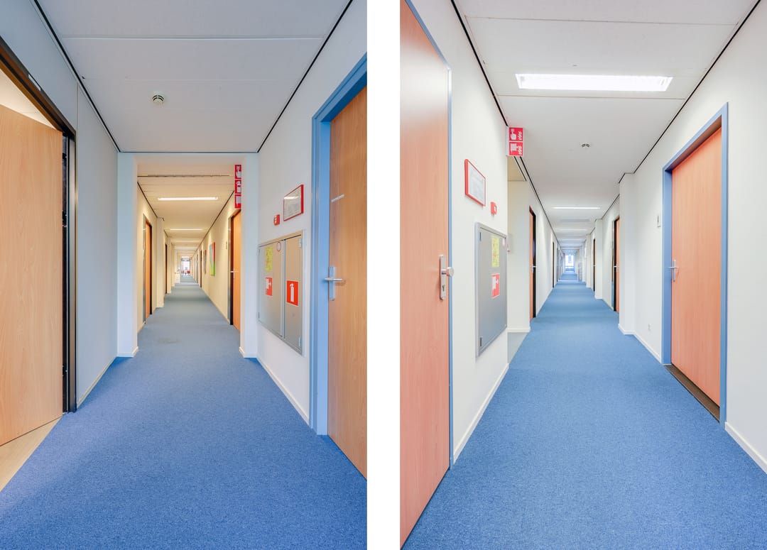 - Topkoeling, inbouwarmaturen, liften, te openen ramen, kabelgoten, systeemplafond, toilet, pantry, verwarming en kamerindeling