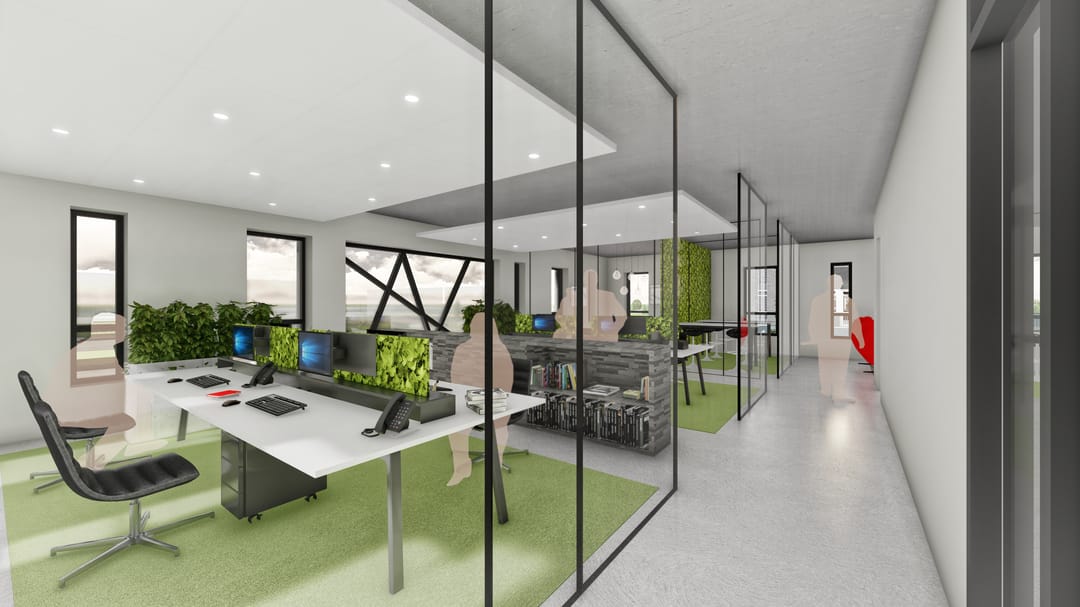 Het casco-ontwerp van de kantoren is zo bedacht dat er veel vrijheid ontstaat voor de indeling. De entree en de kern met voorzieningen als een lift, trap en toilet zijn vaste onderdelen. Rondom deze kern is het mogelijk zowel complete kantoor- tuinen te realiseren, als afzonderlijke ruimtes.