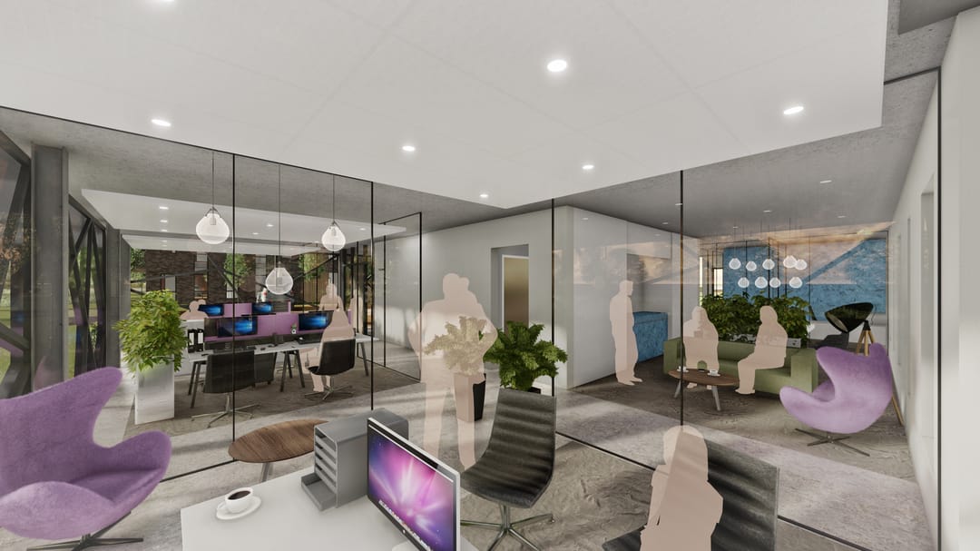 Er zijn zeven kantoren ontworpen waarvan er reeds 6 zijn verkocht, deze markeren de entree van De Plantage. De kantoren hebben ieder een eigen unieke uitstraling, maar zijn duidelijk familie van elkaar. De gekozen natuurlijke basismaterialen zijn baksteen, glas en hout.
