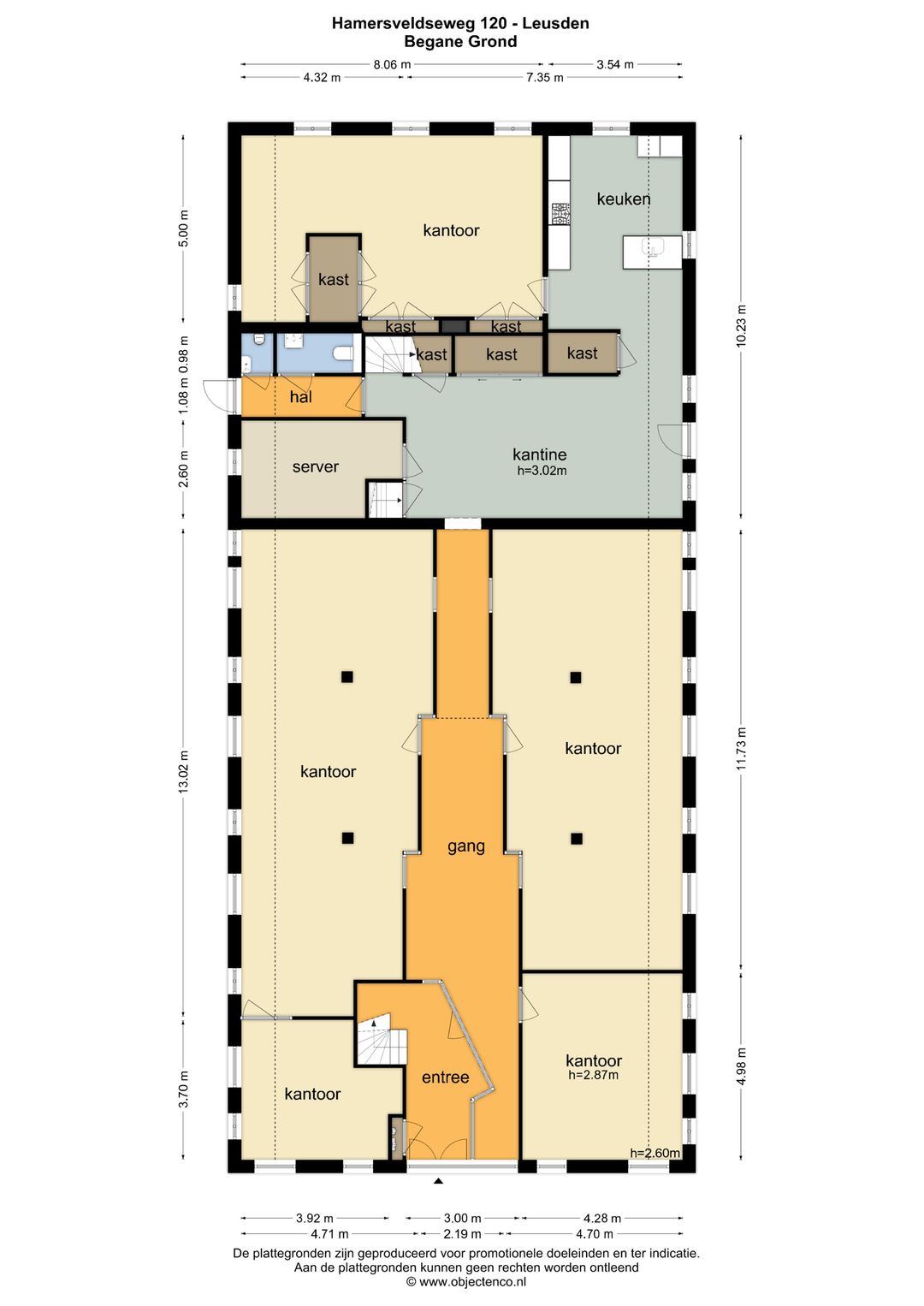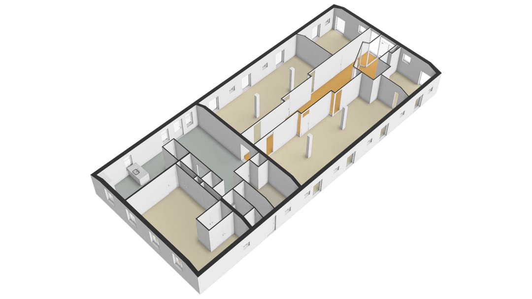 • indeling betreft een combinatie van kantoortuinen en kantoorkamers