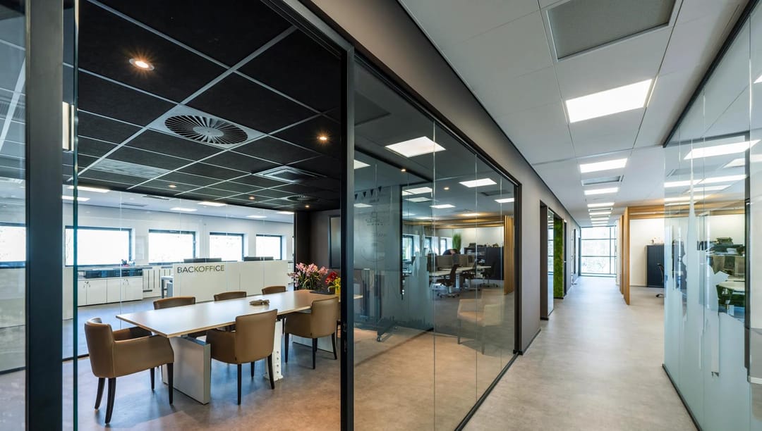 - Mechanische ventilatie en verwarming en koeling middels koelplafond;