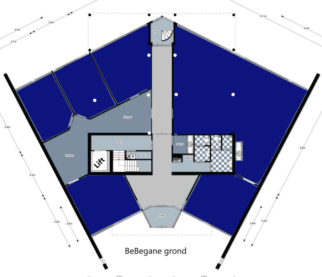 Het totale kantoorgebouw bestaat uit drie representatieve bouwlagen. De voor verhuur beschikbare ruimte bevindt zich op de begane grond en heeft een bruto vloeroppervlak van circa 310 m² bvo. De grote raampartijen zorgen voor een uitstekende lichtinval en een prettige, lichte werkomgeving. De ruimte is efficiënt in te delen en leent zich perfect voor een combinatie van een open kantoorlandschap, afzonderlijke werkplekken en vergaderruimtes.
