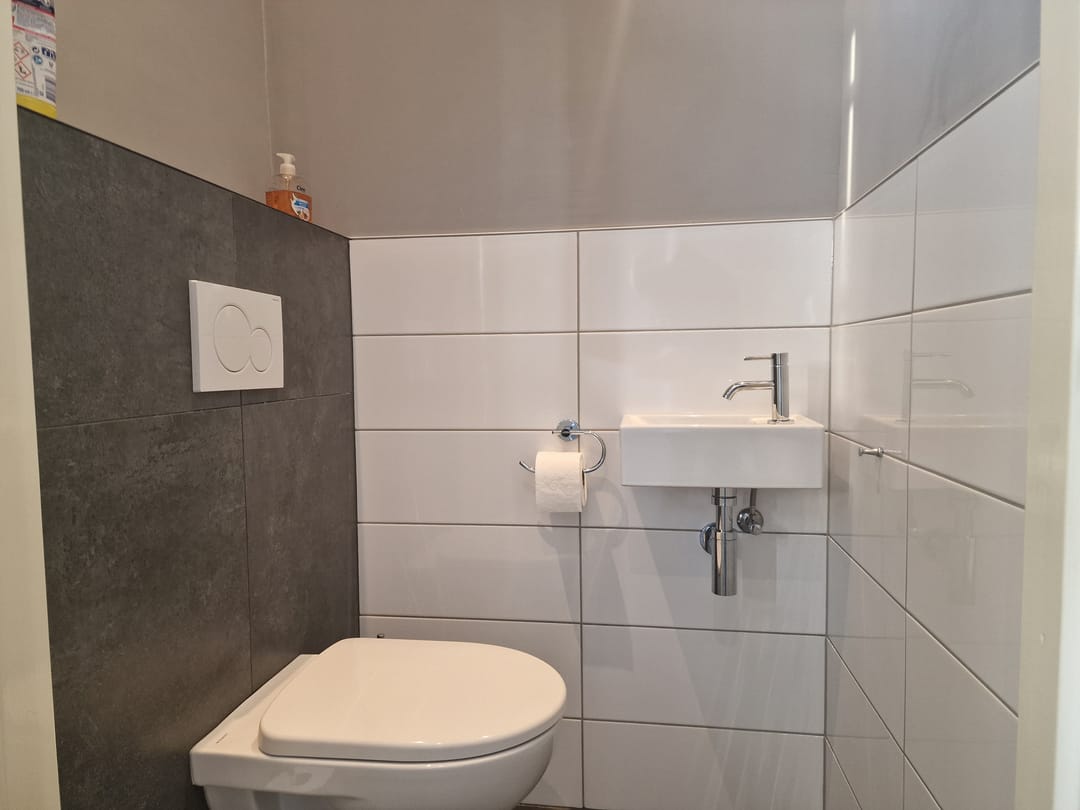 • Toiletruimte met hangend toilet en fonteintje