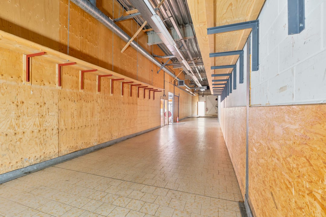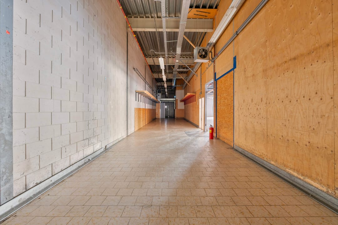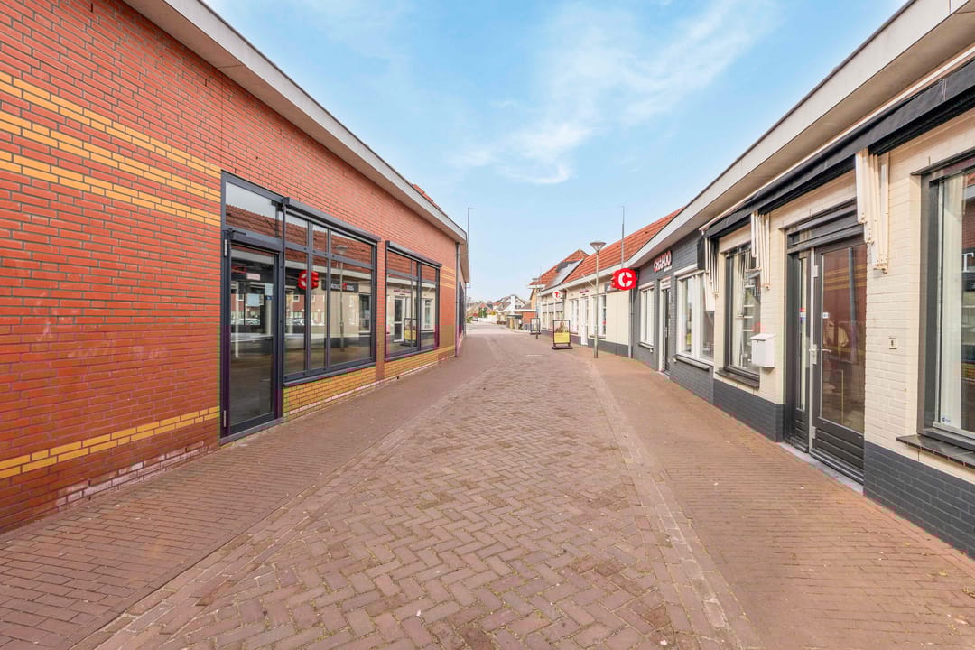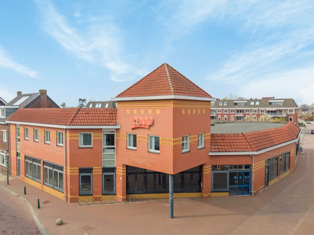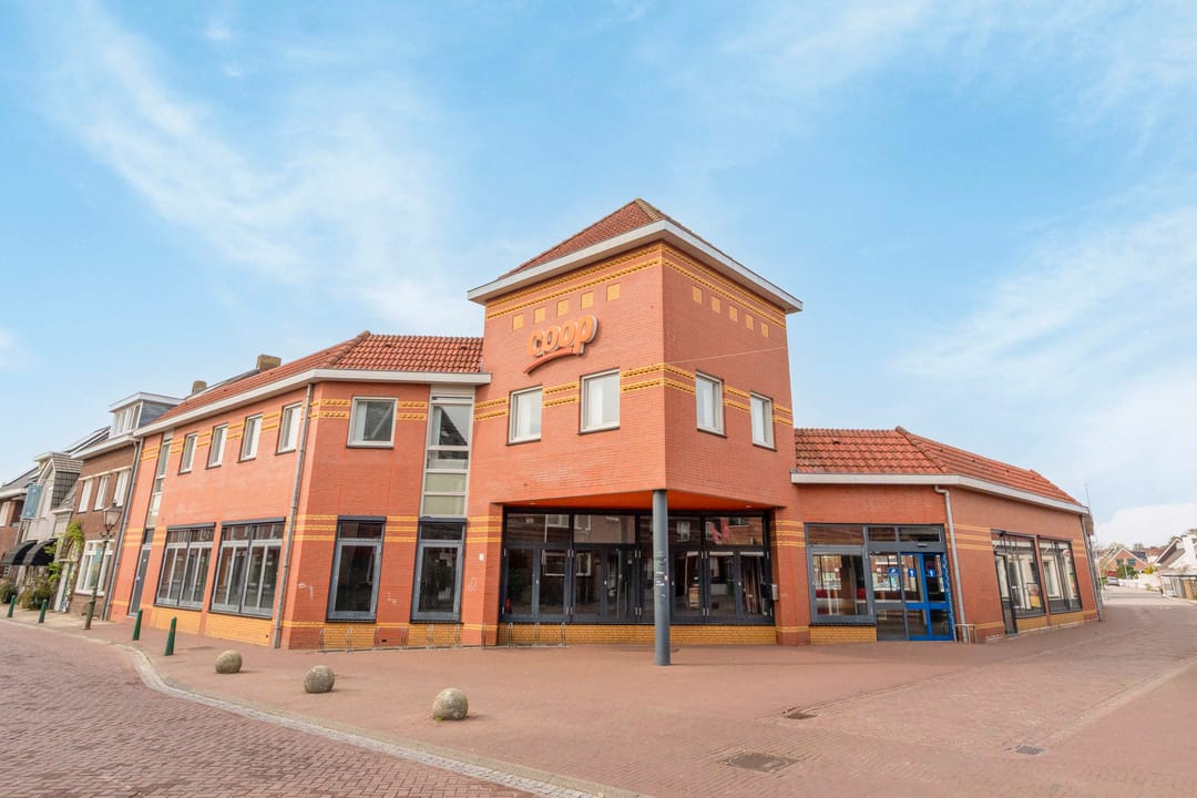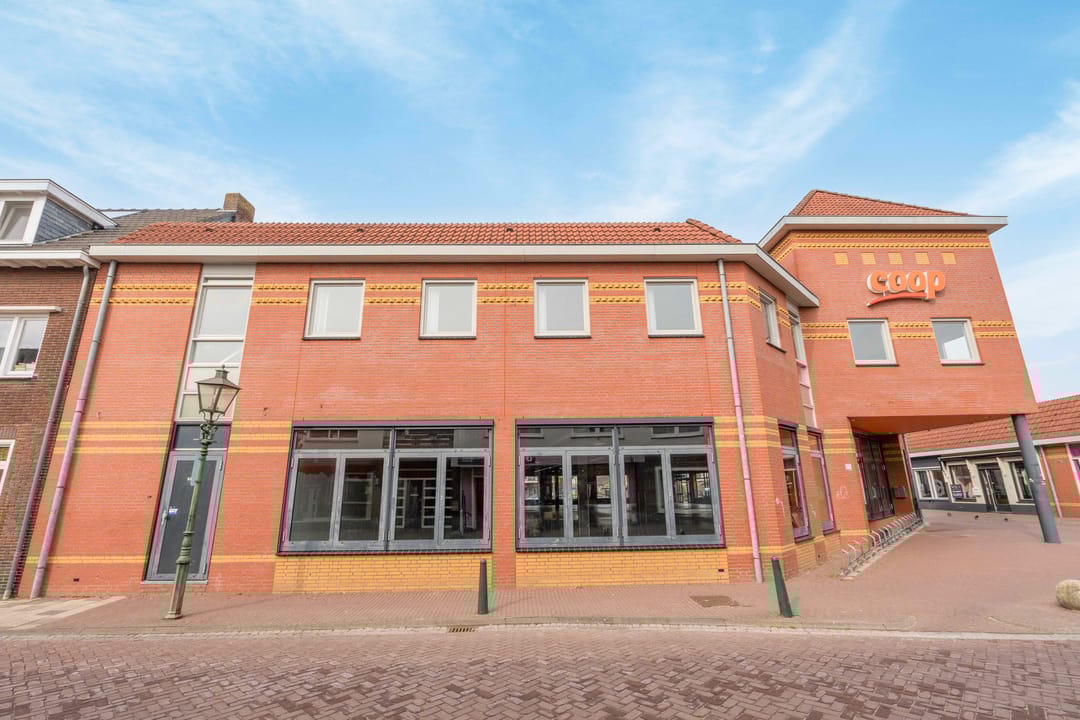 De winkelruimte (voorheen Coöp) beschikt over een entree aan de rechterzijde van het pand. Aan de linkerzijde bevindt zich een separate ingang, welke voorheen dienstdeed als personeelsingang. De frontbreedte bedraagt circa 16 meter. De winkelruimte heeft een oppervlakte van circa 851 m² en is voorzien van een lichtgrijze tegelvloer en mechanische ventilatie. Aansluitend bevindt zich een magazijnruimte van circa 132 m².