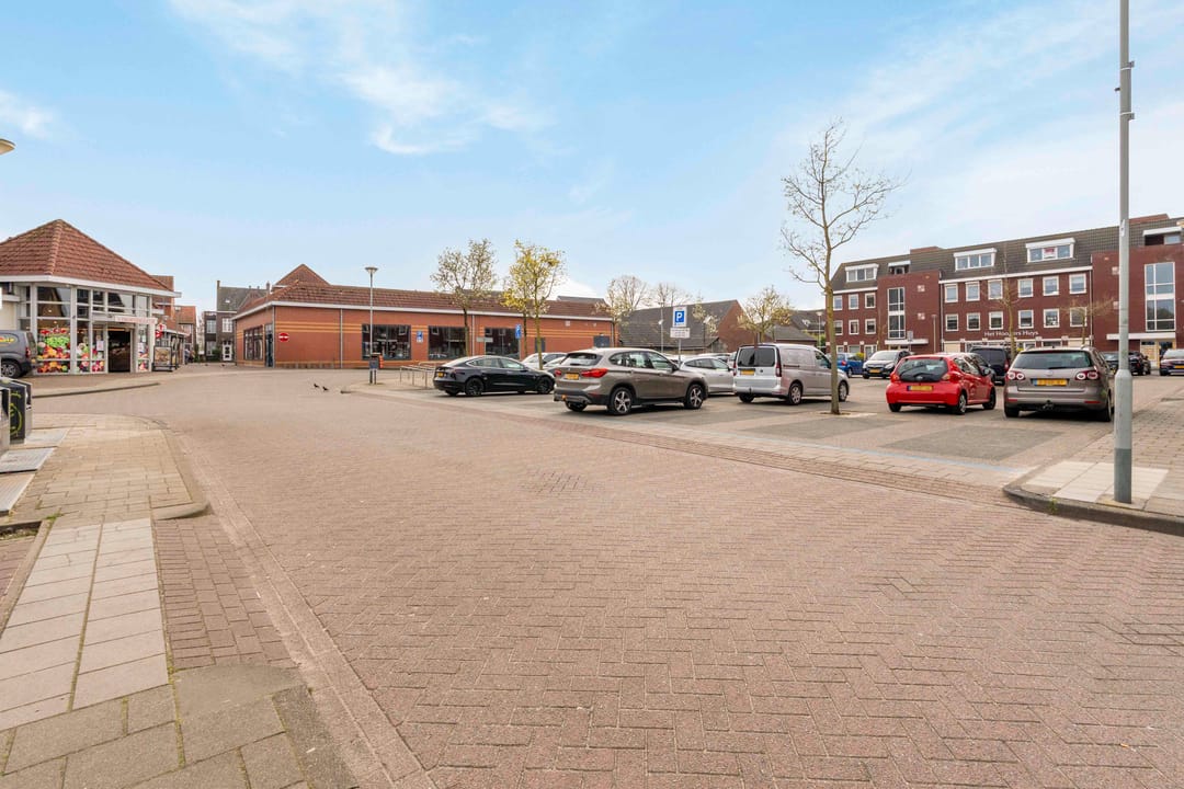 Achter het object bevindt zich een ruim parkeerterrein met deels vrij toegankelijke parkeerplaatsen en deels parkeerplaatsen met een parkeerschijf.