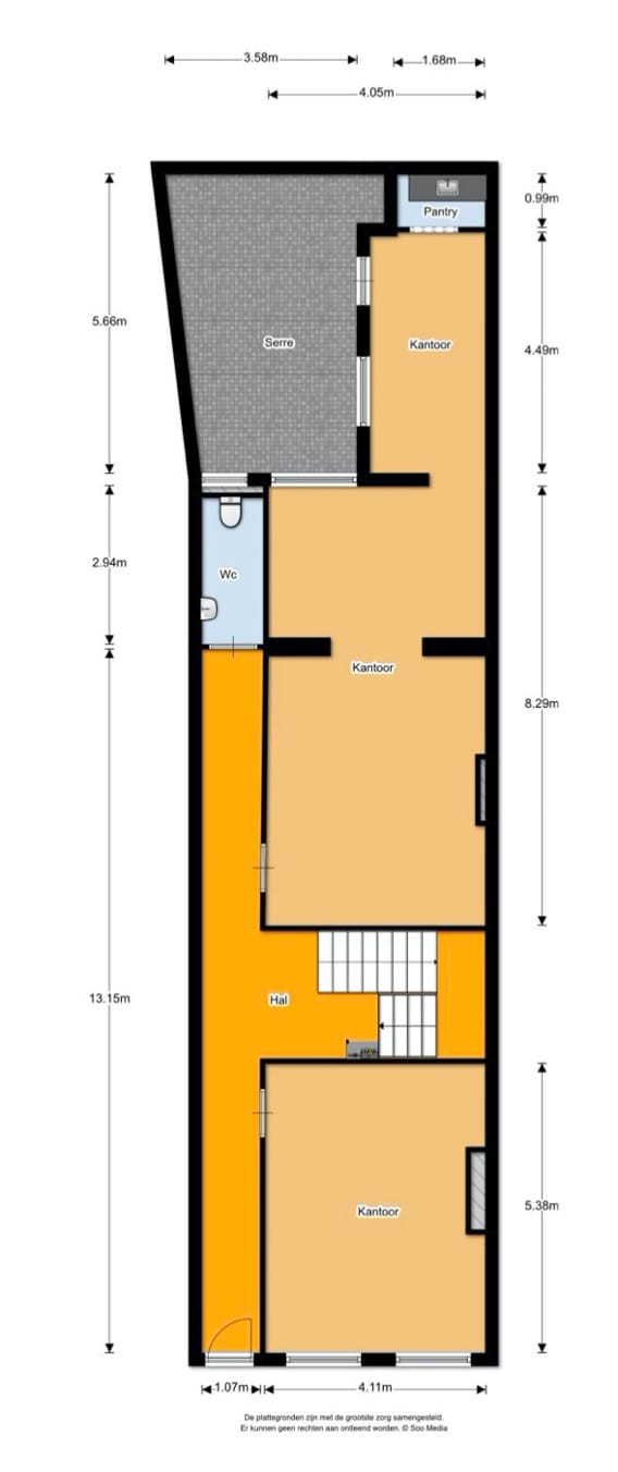 Indeling object : ca. 100 m² VVO kantoorruimte met pantry en toilet op begane grond alsmede een kelderruimte.