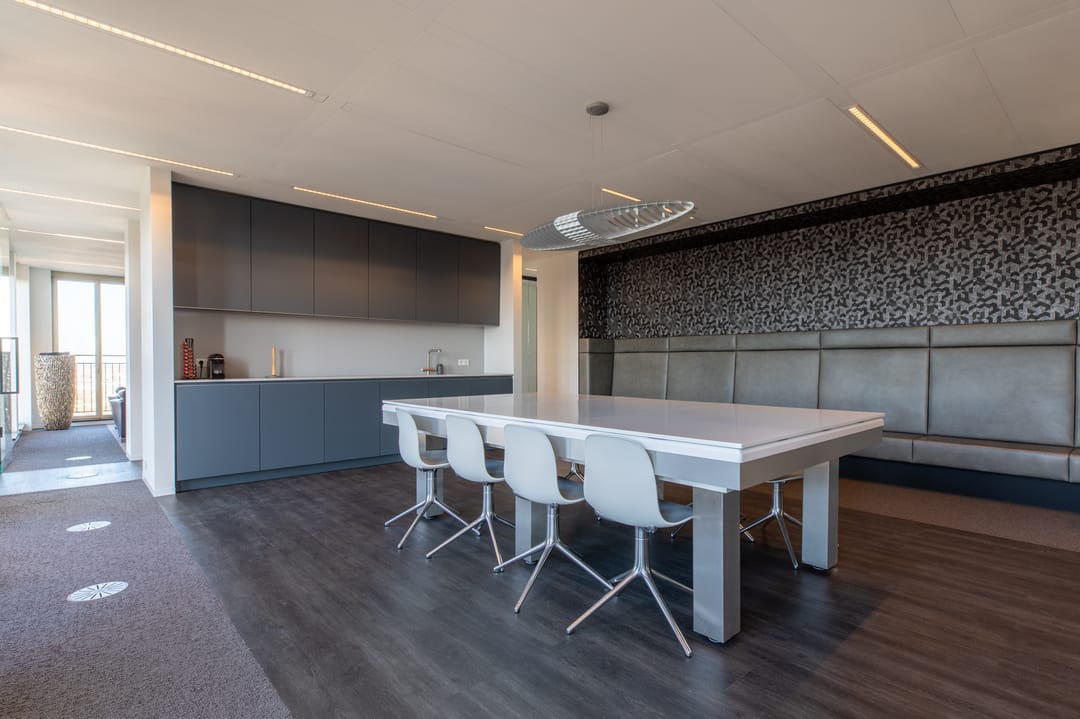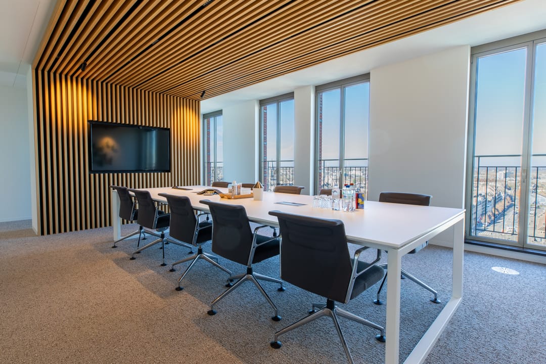 De kantoorruimte op de 13e verdieping biedt een indrukwekkend panoramisch uitzicht over Maastricht en de omliggende regio. Grote raampartijen zorgen voor een overvloed aan natuurlijk daglicht, wat bijdraagt aan een prettige en productieve werkomgeving. De ruimte is flexibel deelbaar en geschikt voor uiteenlopende kantoorconcepten, zoals open werkvloeren, vergaderruimtes en separate kantoren.