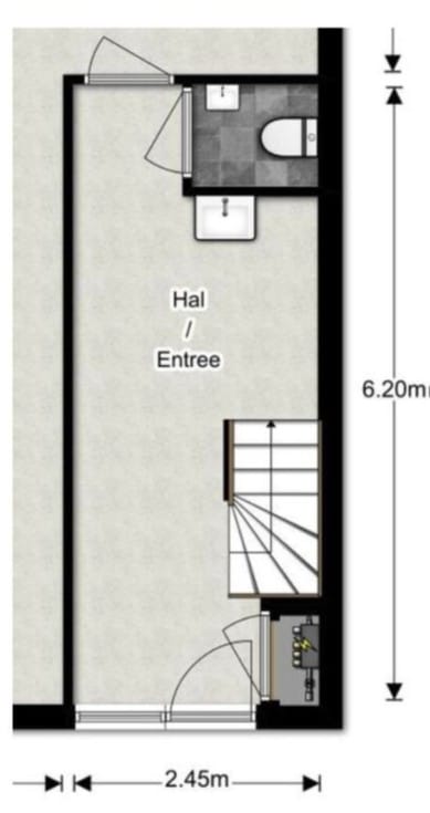 • Gezamenlijk: fraaie entreehal met garderobe en trapopgang, toiletruimte op de begane grond, uitstortgootsteen onder de trap.
