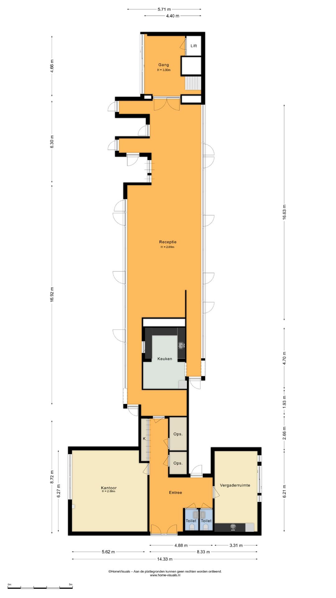 De praktijk-/kantoorruimte is gelegen op de begane grond en is afzonderlijk afsluitbaar. De ruimte is voorzien van:
