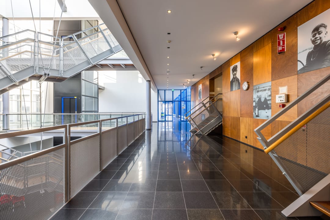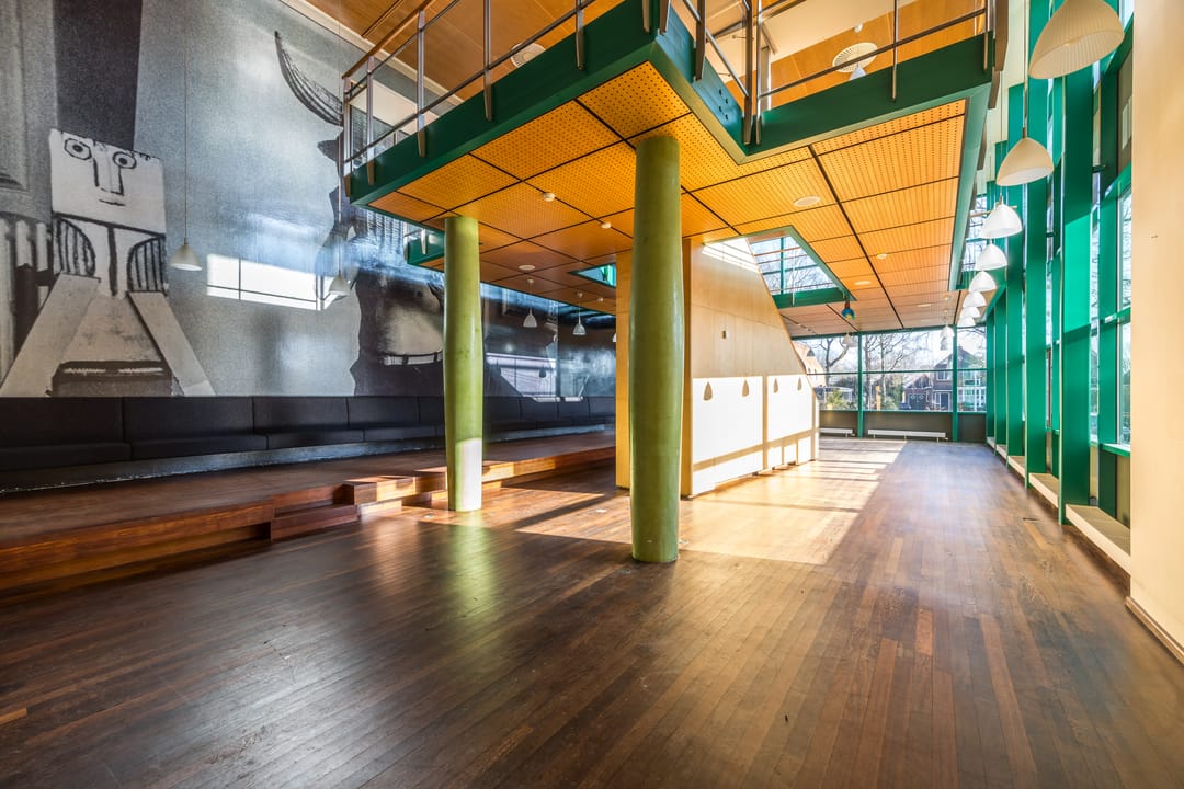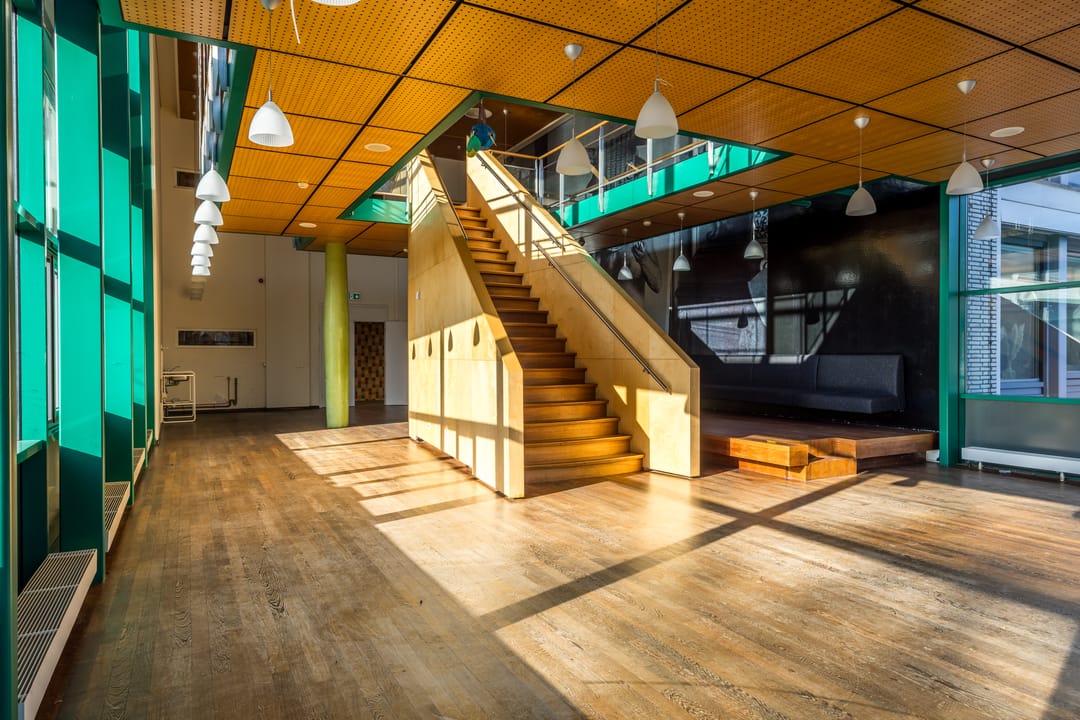 Bijvoorbeeld aula, auditorium of het Groen Café – geschikt voor bijeenkomsten, evenementen of creatief gebruik. Eventueel te combineren met andere beschikbare ruimtes.