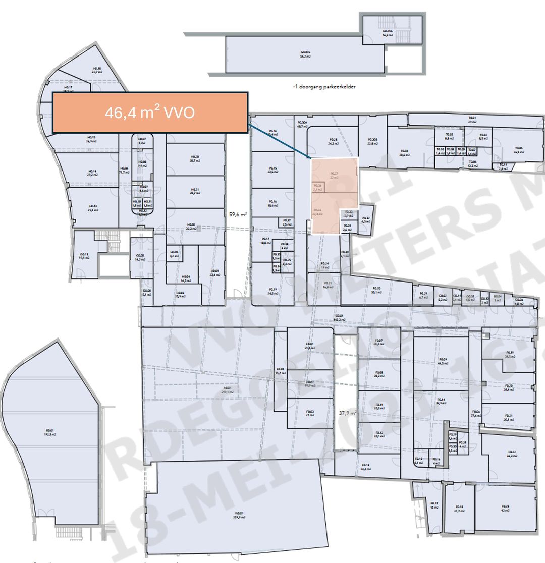 Ruimtes P.0.26, 0.27 en 0.036 : ca. 46,4 m2 VVO, prijs op aanvraag