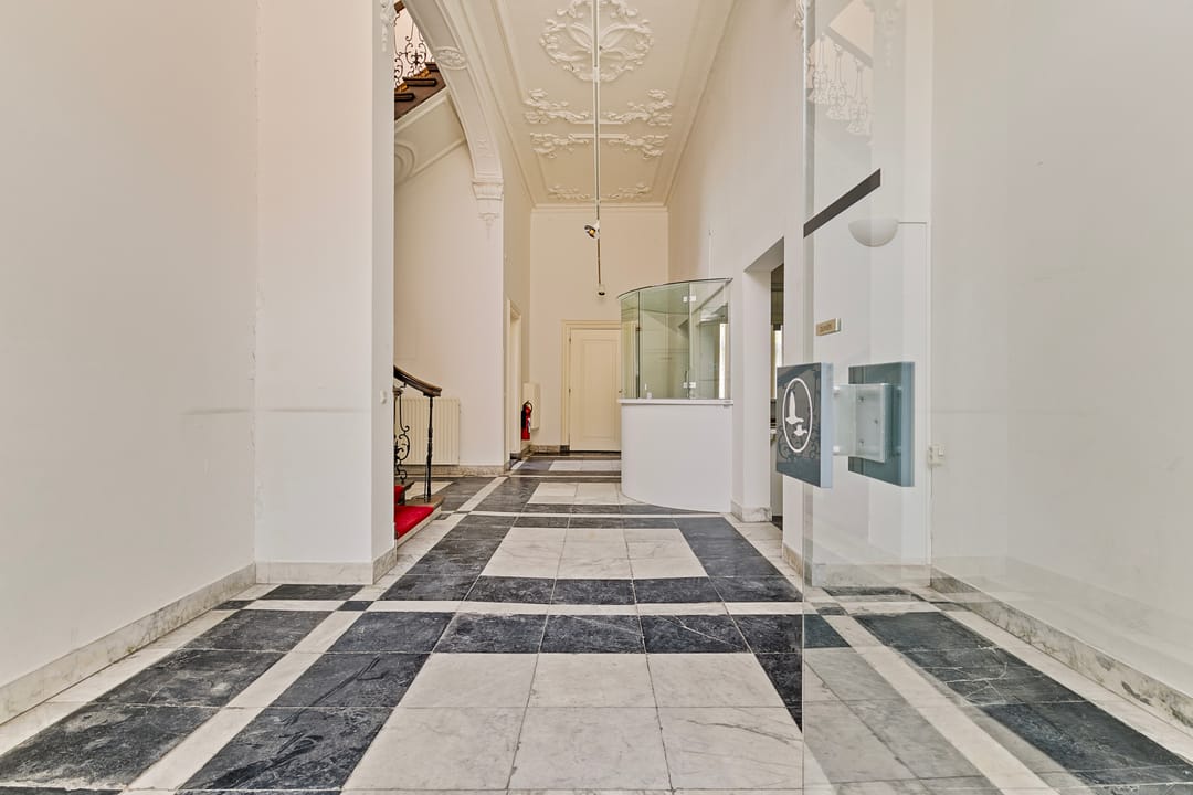 De eerste bouwlaag is het souterrain. Het oppervlakte van deze bouwlaag is ca. 163 m2 VVO groot. In het verleden heeft het souterrain de dienst gedaan als opslagruimte. Aan de voorzijde van het pand is een (buiten)trap gesitueerd. Deze trap geeft toegang tot het entree. Gemakshalve wordt deze bouwlaag ‘begane grond’ genoemd. Deze verdieping is ca. 307 m2 VVO groot en verkeert in nette staat van onderhoud. Diverse authentieke ornamenten en historische schilderingen geven deze bouwlaag een statige en indrukwekkende uitstraling. Middels een glazen tussenportaal wordt toegang verkregen tot de centrale aankomsthal. De hal biedt toegang tot 6 kantoor-praktijkruimtes, de receptie, diverse toiletvoorzieningen, een lift en de trapopgang naar de 1e verdieping.