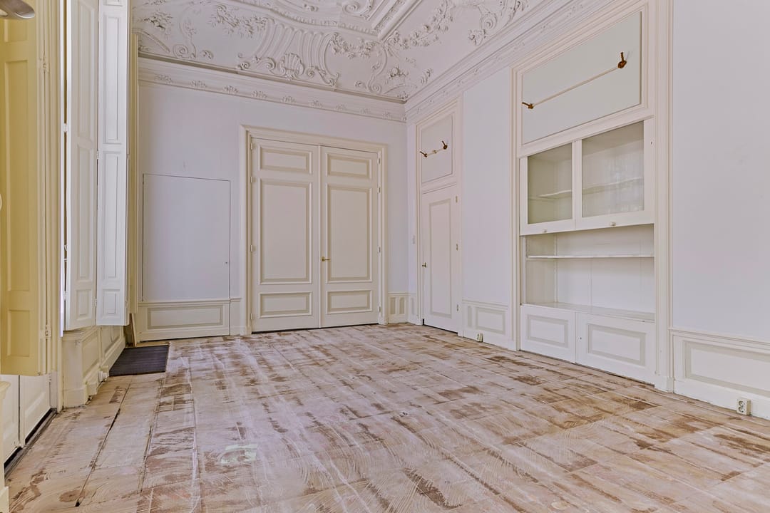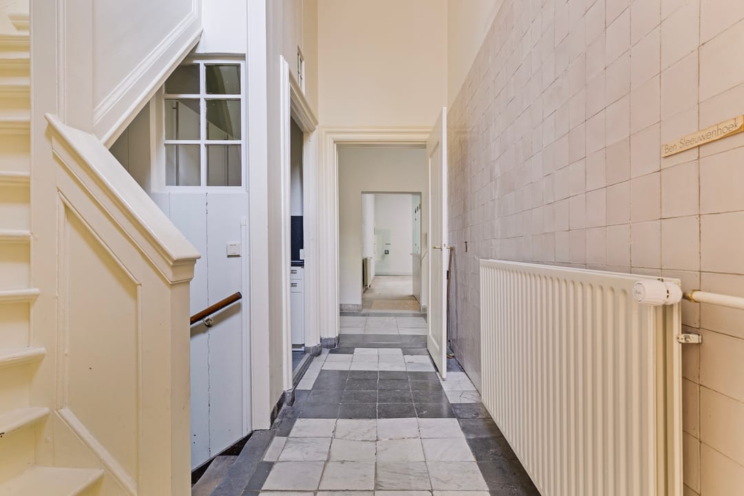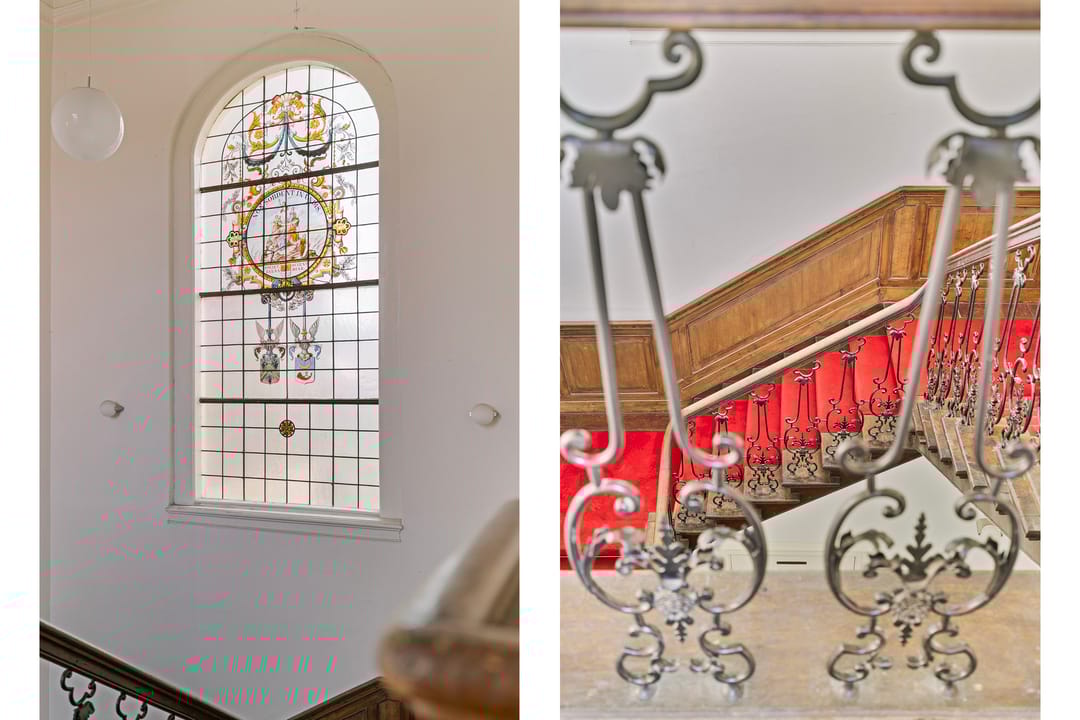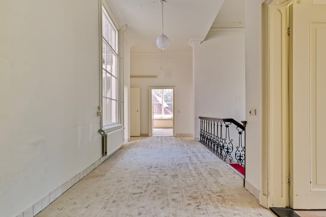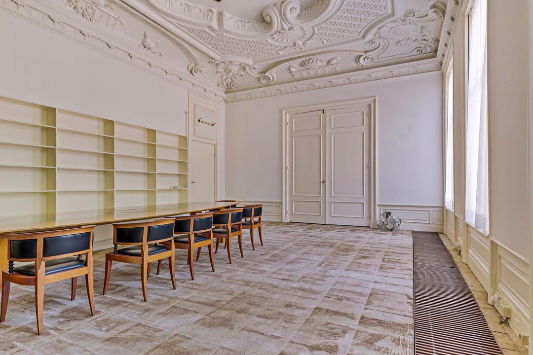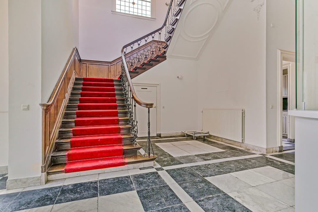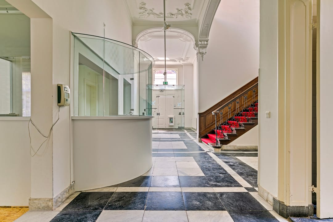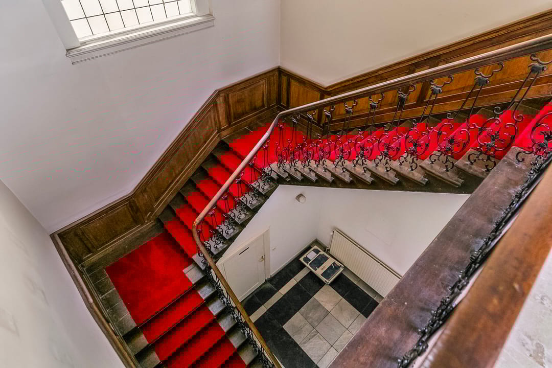 De ruimtes op de 1e verdieping is bereikbaar via het imposante trappenhuis met negen vertrekken, een toiletgroep en toegang tot de lift.