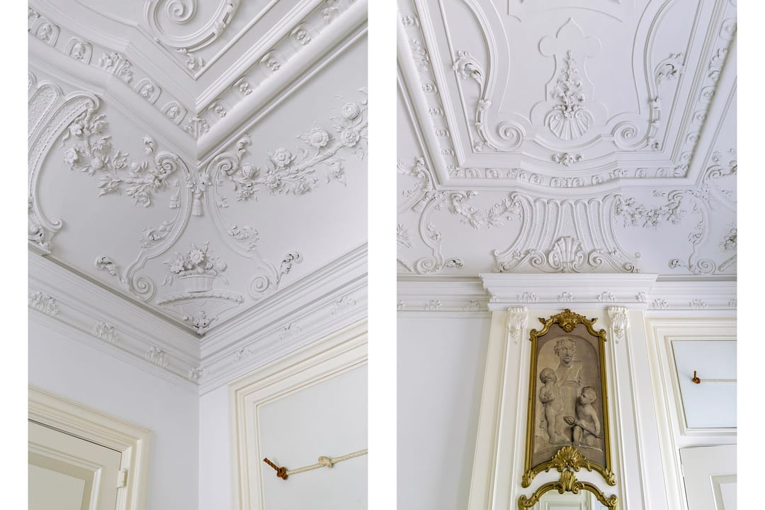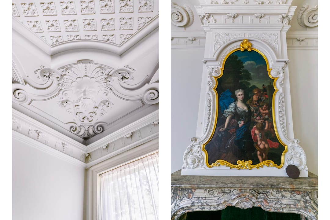 Vanaf de straat is goed te zien dat de 18de-eeuwse voorbouw als een los blok voor het middeleeuwse huis staat. Aan de linkerzijde van het pand staat de voormalige bibliotheek van het Zeeuws Genootschap. Deze bibliotheek maakt geen deel meer uit van het aangeboden gebouw. In de achtervleugel zijn twee kamers bewaard gebleven met stucplafonds van omstreeks 1710. Deze zijn in de trant van Daniel Marot met fijn uitgevoerde bloemslingers, vogels en spelende putti en deze behoren tot de mooiste van ons land.