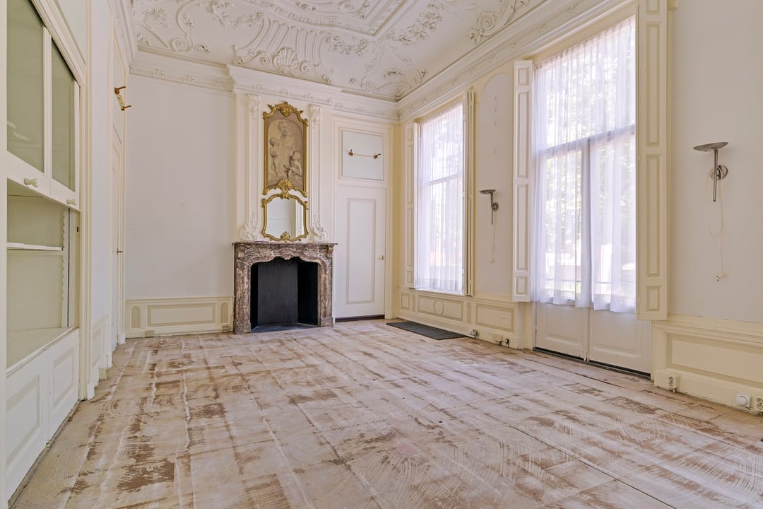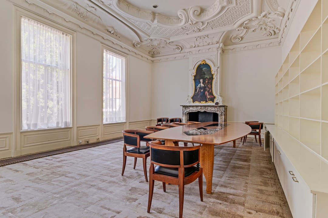De begane grond is als volgt ingedeeld; entree via bordestrap aan de voorzijde van het gebouw, royale hal met glazen tochtportaal en toegang tot de lift, toiletgroep, ruime receptie, eenvoudige pantry, achteringang vanaf het achtergelegen parkeerterrein, zes vertrekken deels voorzien van fraaie stucplafonds en marmeren schouwen waarvan enkele zijn voorzien van historische schilderingen erboven.