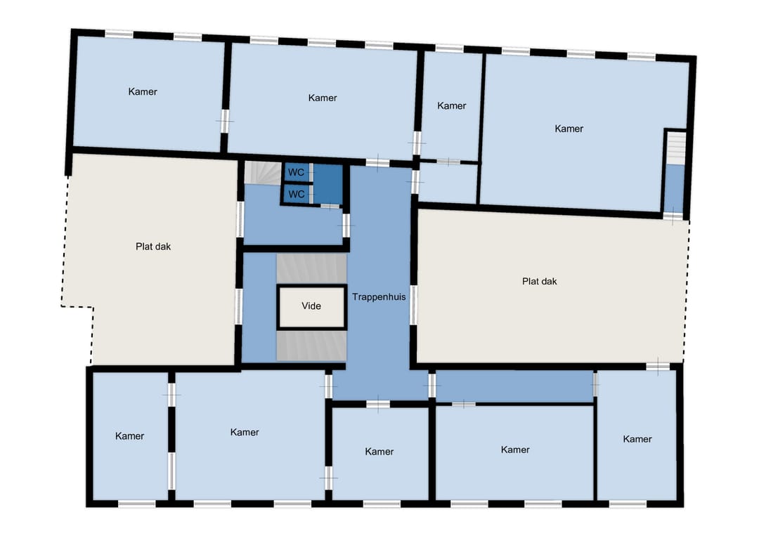 - Een statig kantoorpand van ca. 975 m2 VVO, verdeeld over 4 bouwlagen