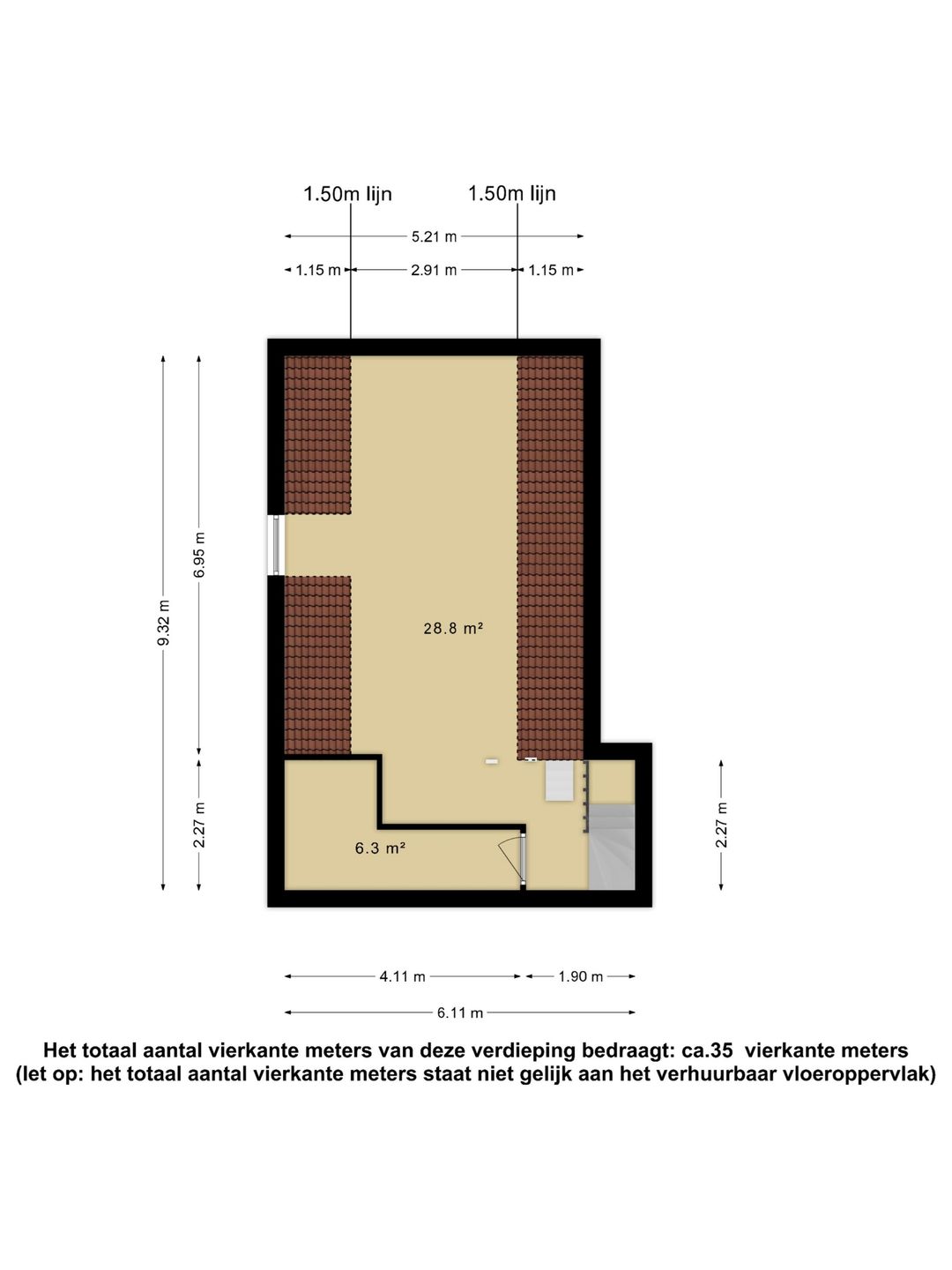 Knusse maar efficiënte kantoorruimte met karakteristieke kapconstructie en extra bergruimte.