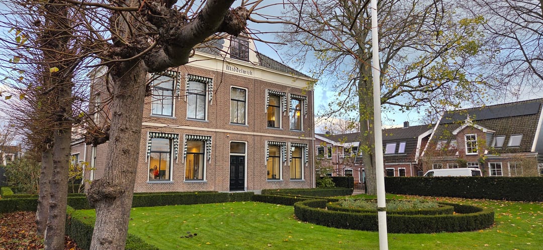 Op een markante hoeklocatie in het historische hart van Middenbeemster bevindt zich Villa Middelwijck, een karaktervolle rijksmonumentale villa uit ca. 1880. Het pand biedt circa 343 m² kantoorruimte (indicatief) verdeeld over meerdere bouwlagen en combineert authentieke details met een representatieve werkomgeving.