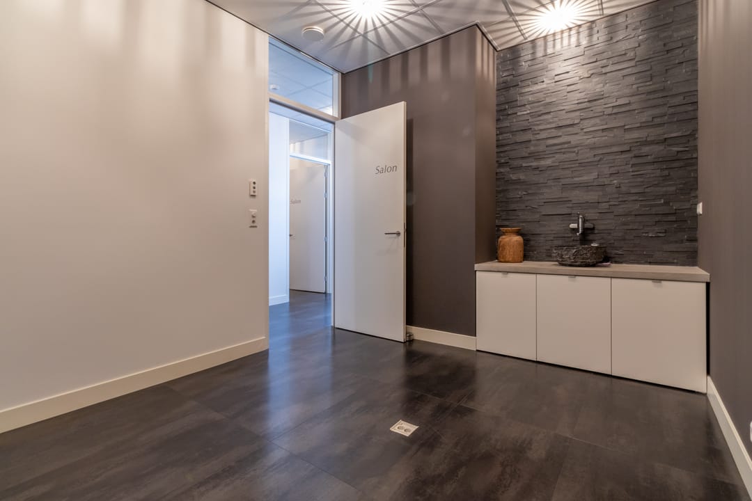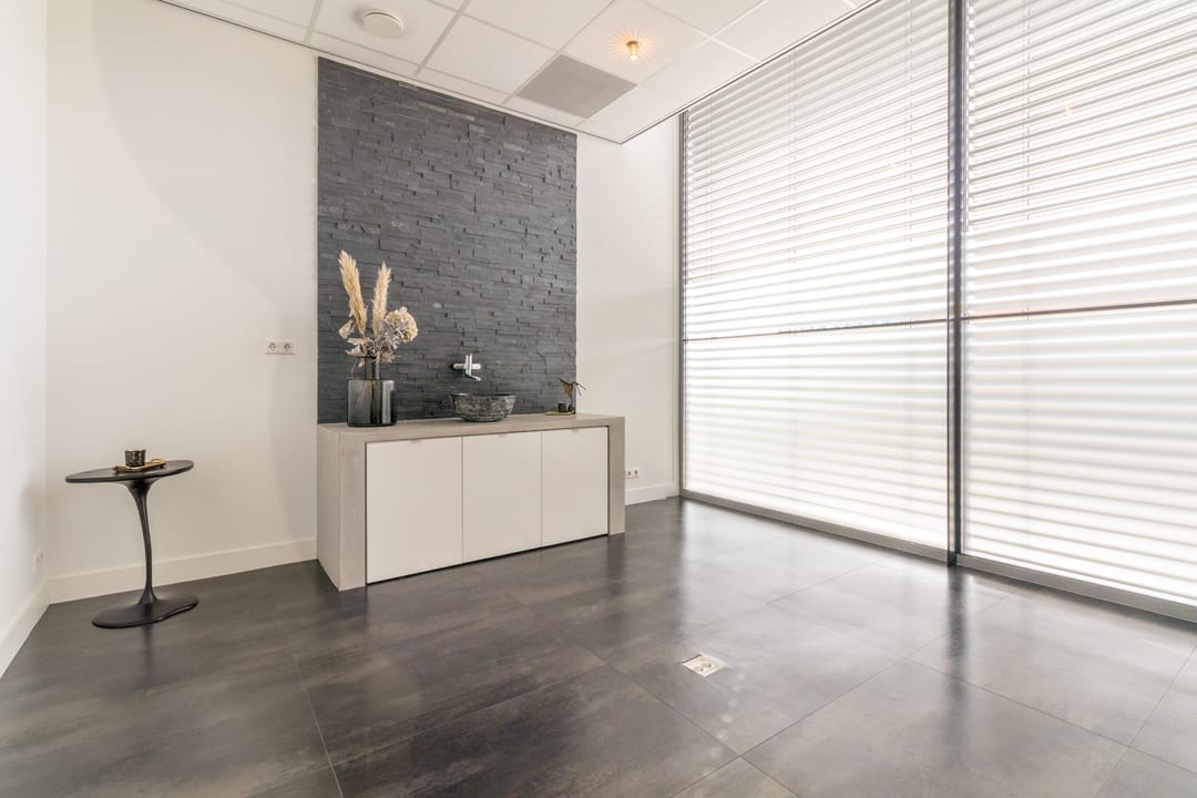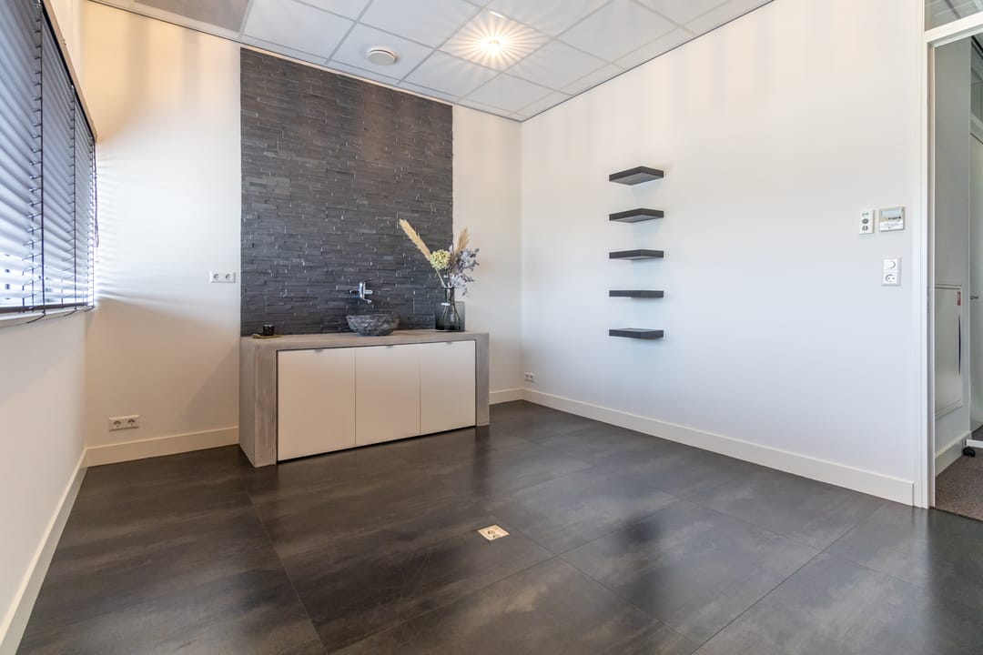 Door middel van additionele ramen aan de achterzijde van het pand heeft de ruimte een rijke hoeveelheid lichtinval en maakt het een ideale ruimte om te werken.