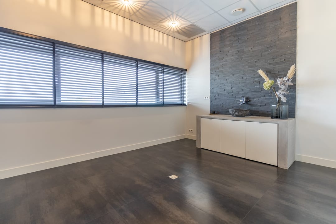 De kantoor/bedrijfsruimte is in augustus 2011 nieuw opgeleverd en is heeft een ruime hoeveelheid lichtinval door de zeer hoge ramen. Het pand kent een zeer hoog voorzieningenniveau mede door de vloerverwarming, airconditioning, PVC vloer en elektrische shutters.