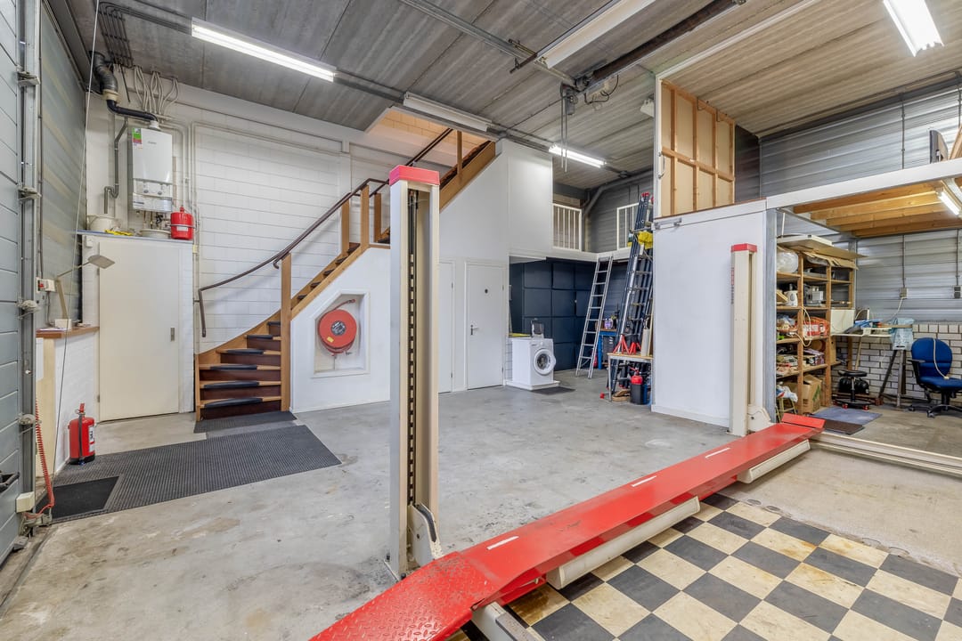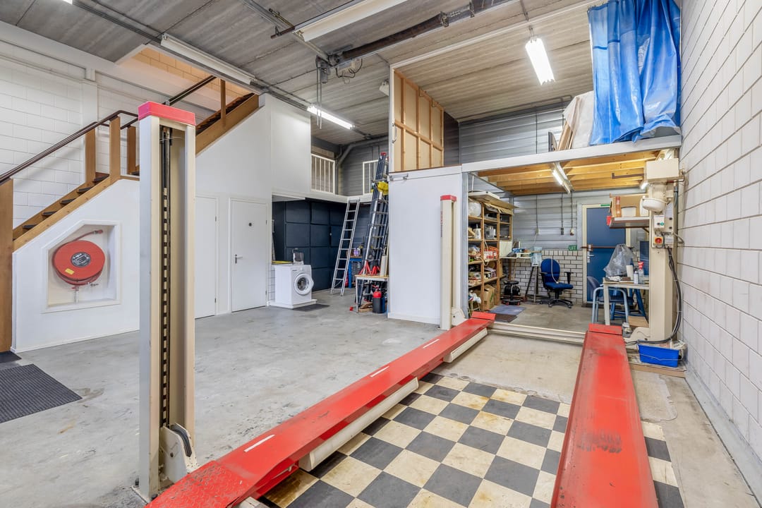 Boven een deel van de bedrijfsruimte is een tussenverdieping (entresol) gerealiseerd. Deze leent zich uitstekend als extra opslagruimte.