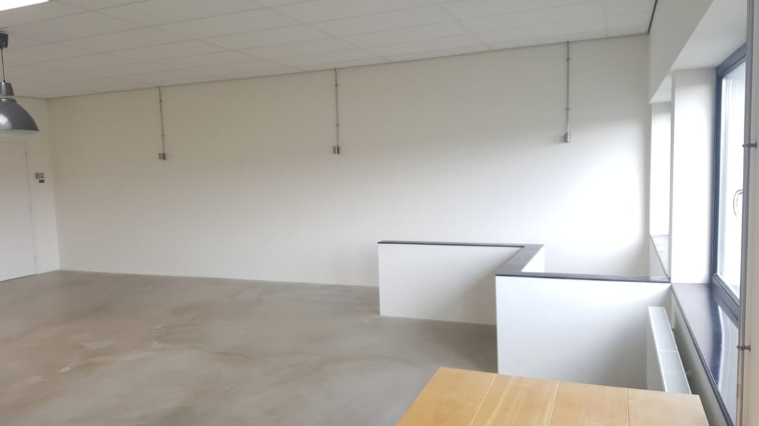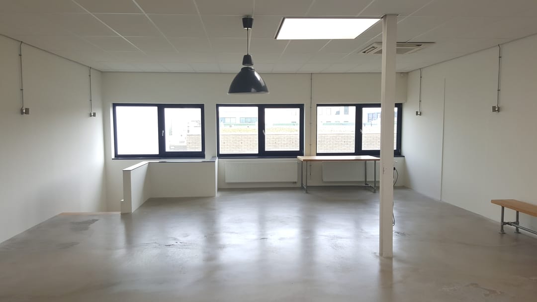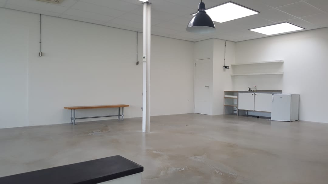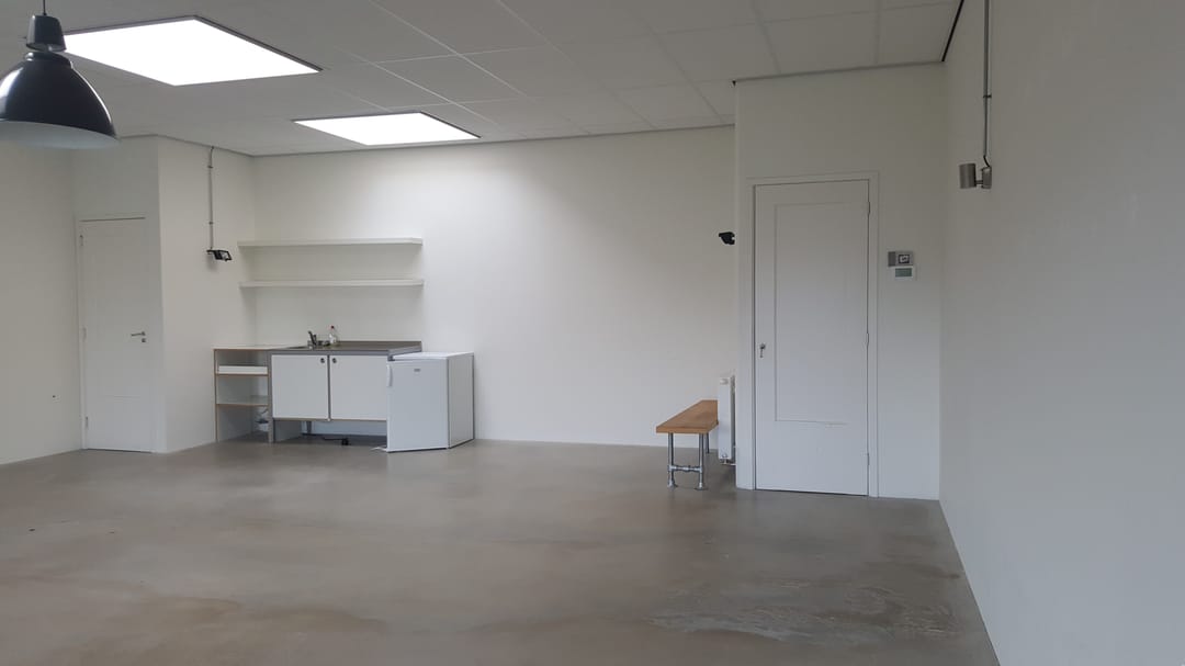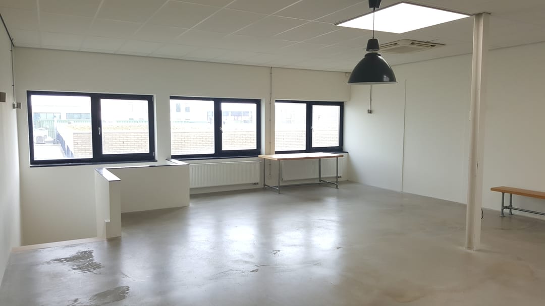 De op de eerste verdieping gelegen kantoorruimte heeft een eigen entree, is afgewerkt met wit stucwerk en is zeer ruimtelijk door het ontbreken van tussenwanden. De ruimte is voorzien van airconditioning en voorzieningen zoals pantry en toiletruimte.