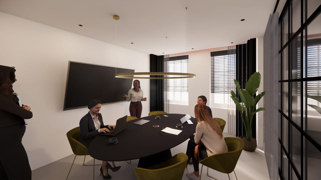 Na de renovatie voldoet het kantoor aan alle eisen van de huidige tijd en beschikt het over een hoogwaardig en zeer representatief afbouwpakket.