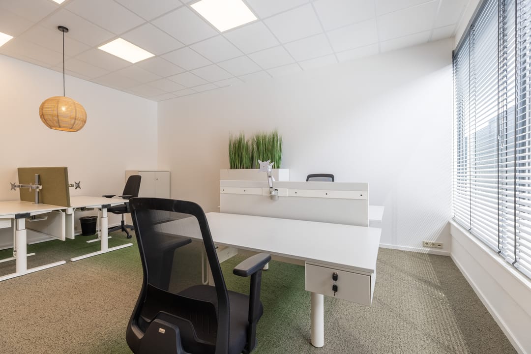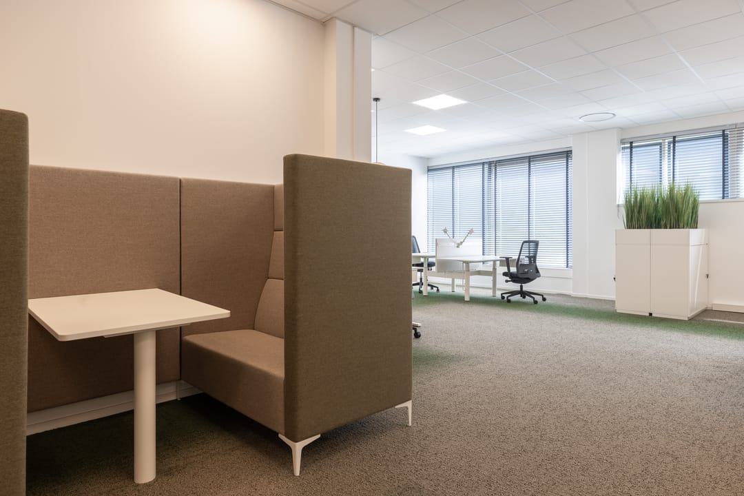 • Volledig gemeubileerd met bureaus, kantoorstoelen, vergadertafel met stoelen, zitje, kasten en kapstok