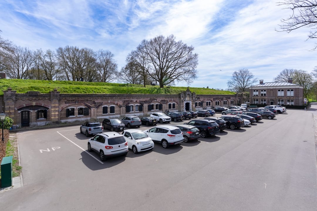 Gratis parkeerterrein direct voor de deur. Aanvullende openbare parkeergelegenheid is beschikbaar langs de vestingrand.