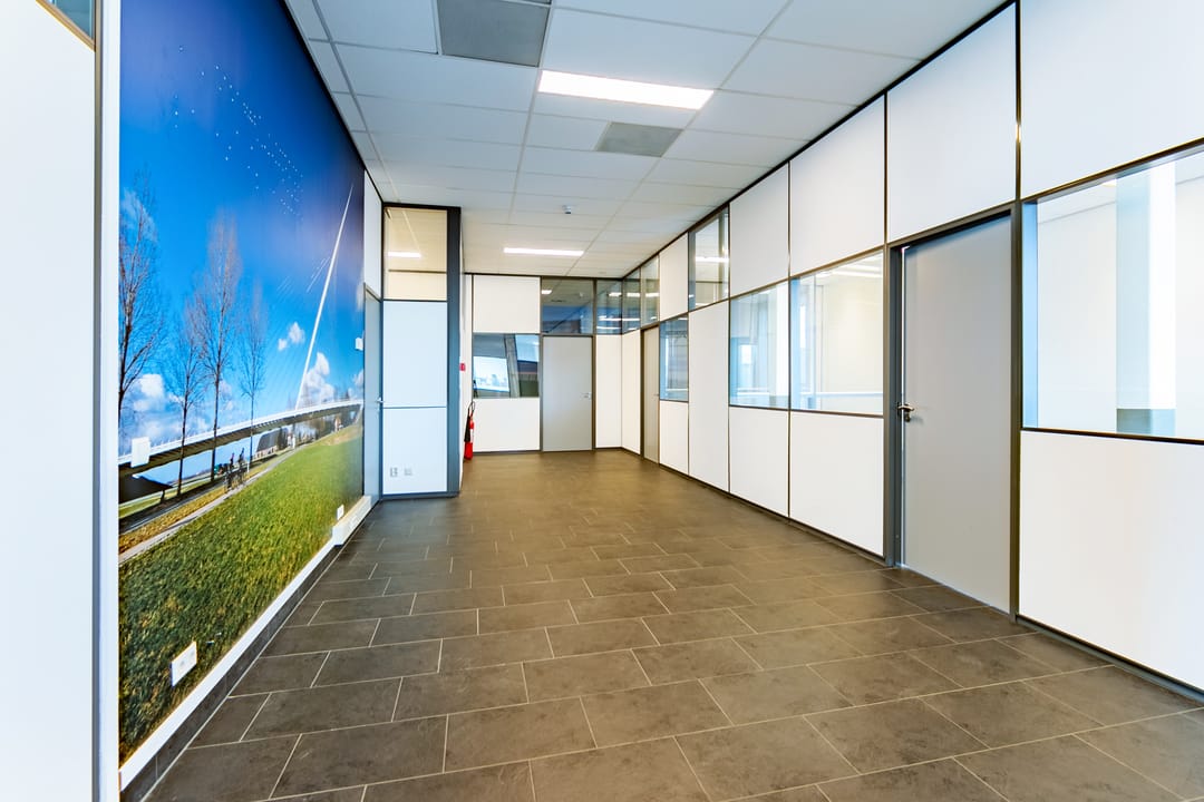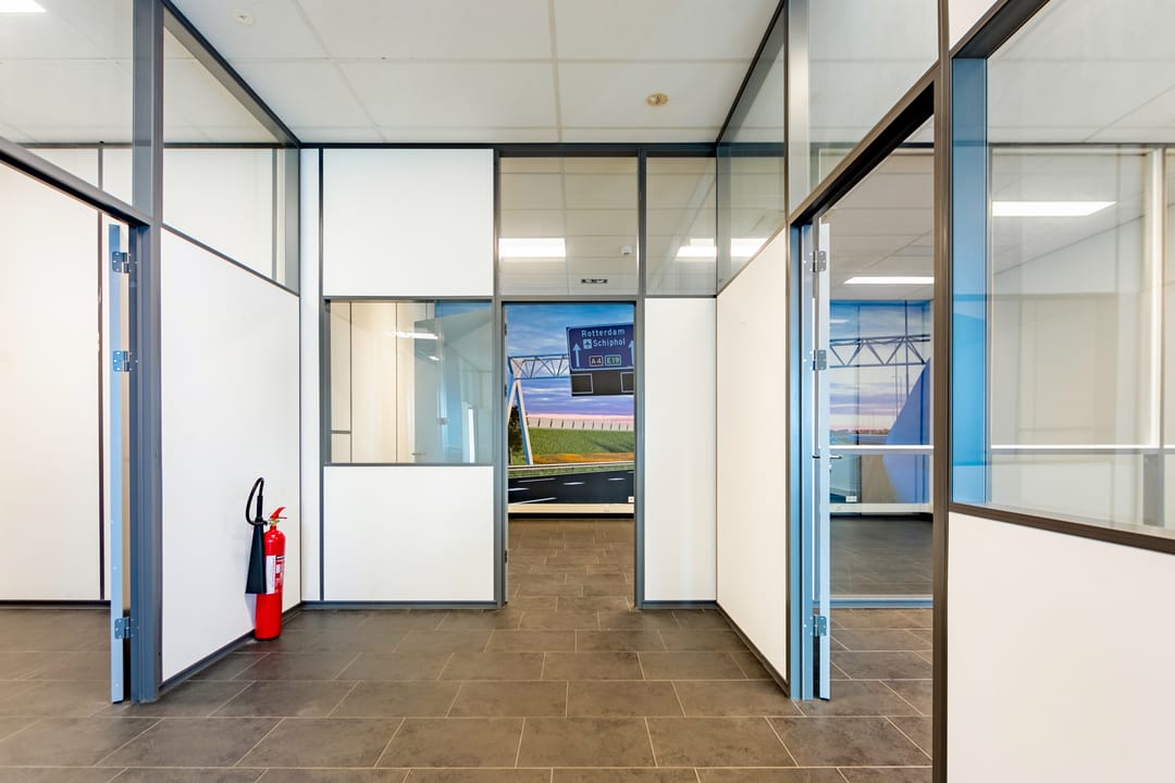 - diverse flexibele scheidingswanden (deels voorzien van glassecties);