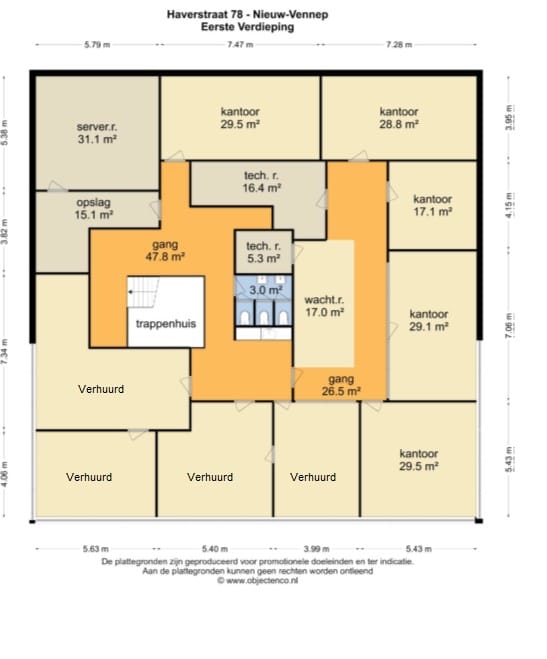 - gedeelde entree aan de zijkant van het object met trappenhuis t.b.v. kantoorruimte op de 1e verdieping;