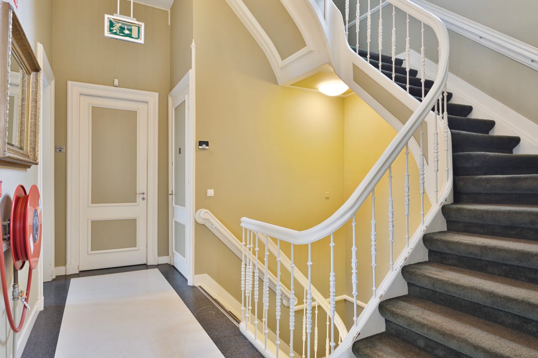 De kantoorvilla is opgetrokken uit drie volwaardige bouwlagen en een kelder. Op de begane grond bevindt zich een ruime centrale hal met een wachtruimte en een viertal kantoor-/vergaderruimtes. De eerste verdieping is toegankelijk via een trap met fraai houtwerk. Op de eerste verdieping zijn 5 ruime kantoor-/vergaderruimtes gesitueerd. Op de tweede verdieping is er een ruime personeelsruimte met pantry en een drietal kantoorruimtes.
