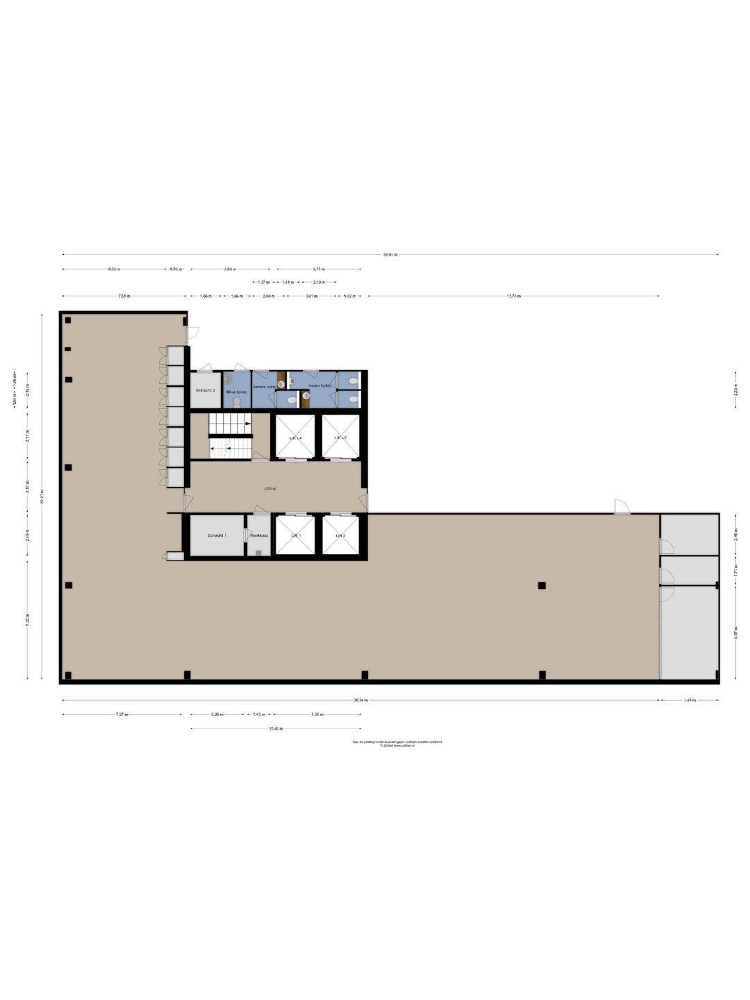 - Mechanische ventilatie, topkoeling, inbouwarmaturen, liften, te openen ramen, kabelgoten, systeemplafond, toilet, pantry, verwarming en kamerindeling