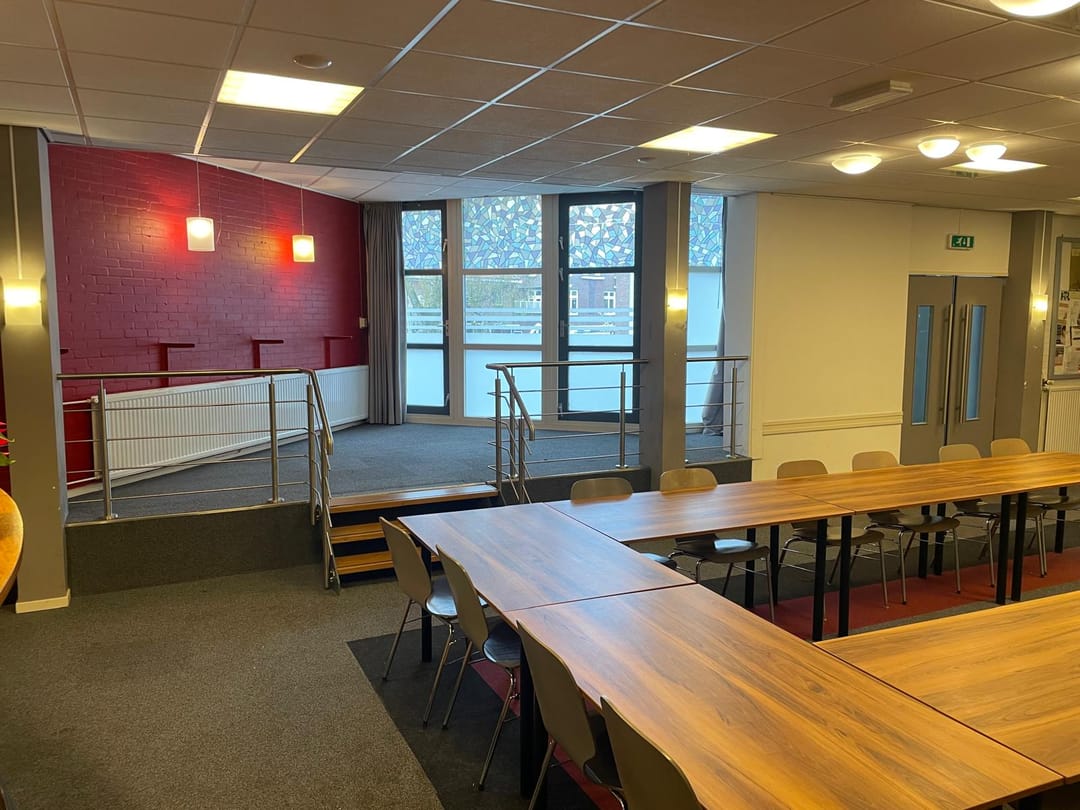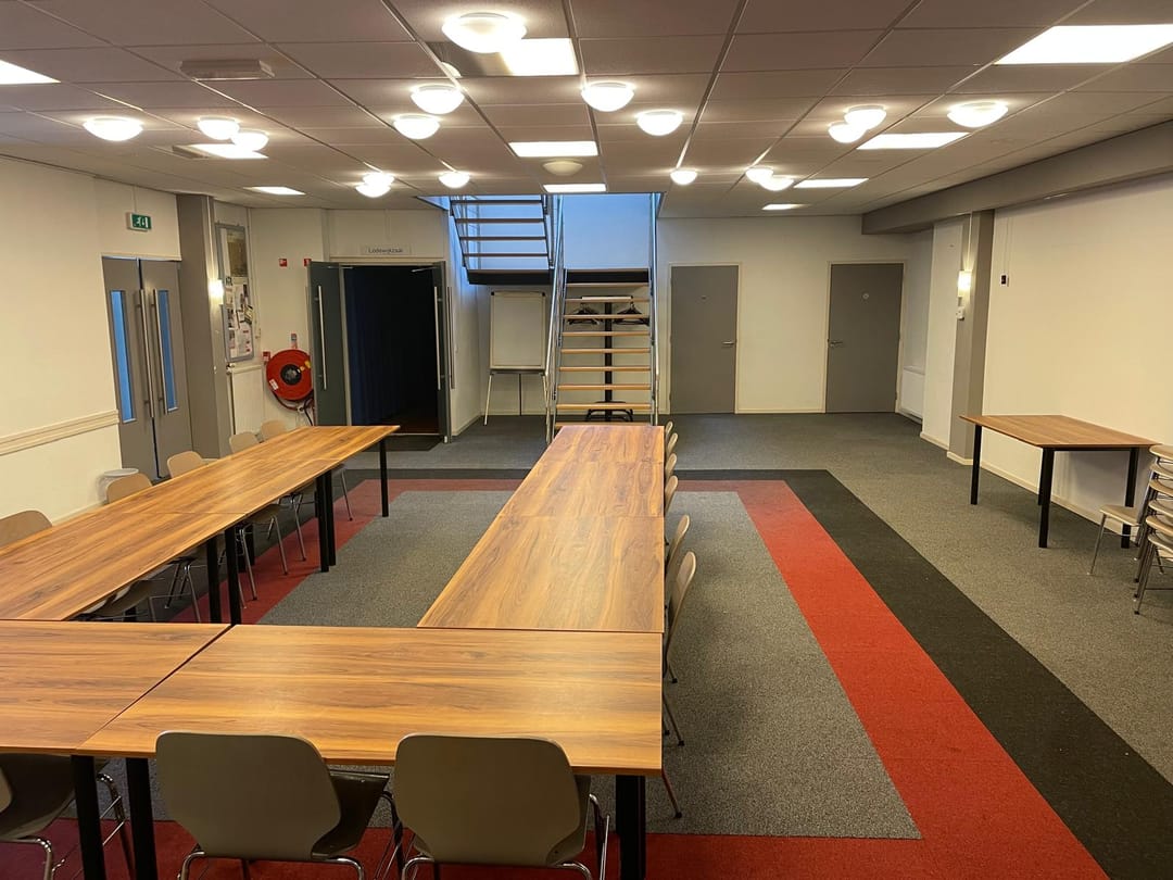 De ruimte heeft een verhuurbaar vloeroppervlak van circa 439 m², verdeeld over twee separate zalen en een aparte kantoorruimte op de eerste verdieping. Daarmee is deze locatie uitermate geschikt voor ondernemers en professionals die op zoek zijn naar een tijdelijke, goed bereikbare huisvestingsoplossing.
