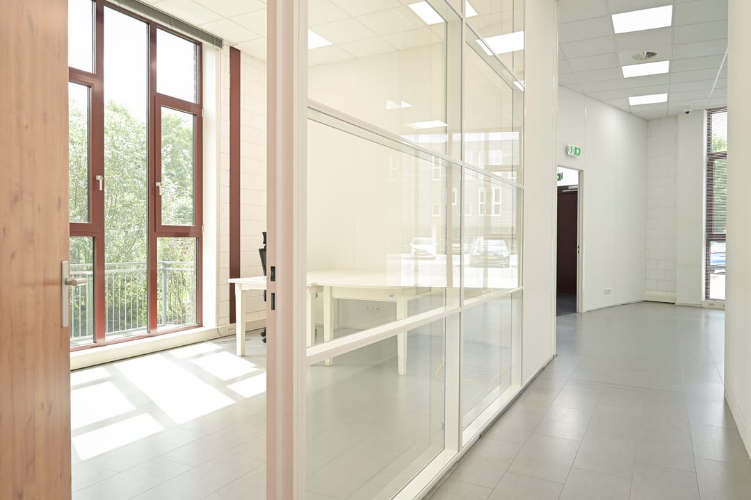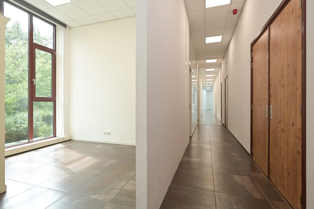 Na betreden van het object zijn verschillende ruimtes te vinden, zoals kleinere ruimtes waar men individueel kan werken en ruimtes waar men in grotere groepen kan vergaderen en werken. Het object heeft een eigen balkon en toegang tot een terrein op het zuiden, waar men na het werk kan genieten van de zon. Ook is het object voorzien van een toiletgroep en een toiletgroep welke is gelegen in de algemene hal.