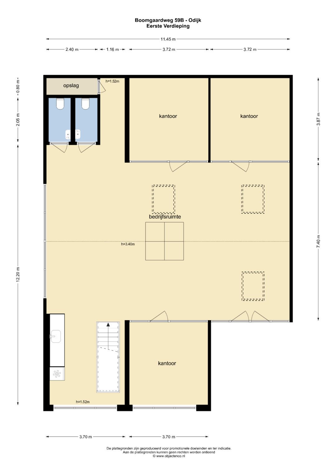 ca. 158 m² verhuurbaar vloeroppervlak op de verdieping.