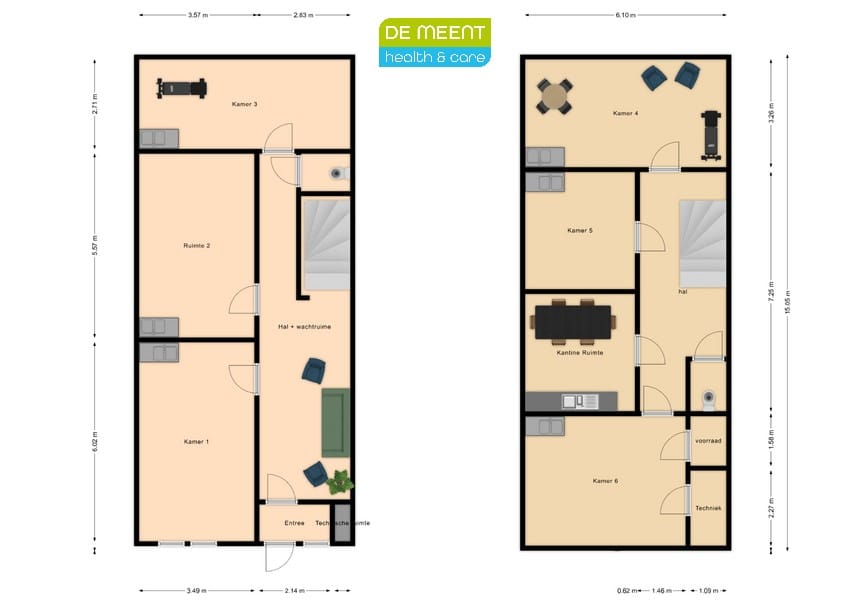 Direct bij binnenkomst zal de gezamenlijke sfeervolle wachtruimte worden gesitueerd inclusief een ruim toilet bestemd voor cliënten.