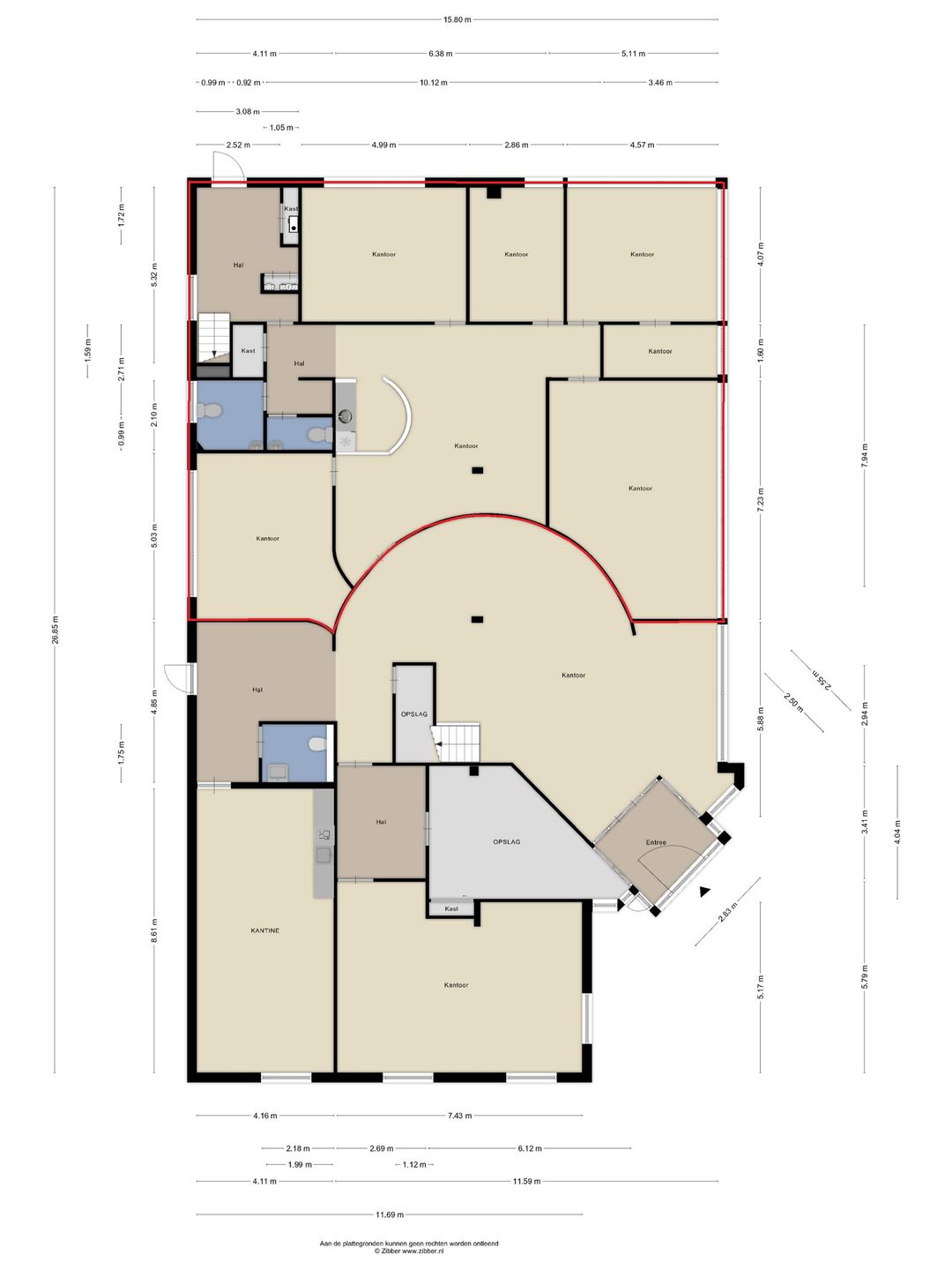 - Ca. 243 m² kantoor,- nevenruimte (hoog plafond)