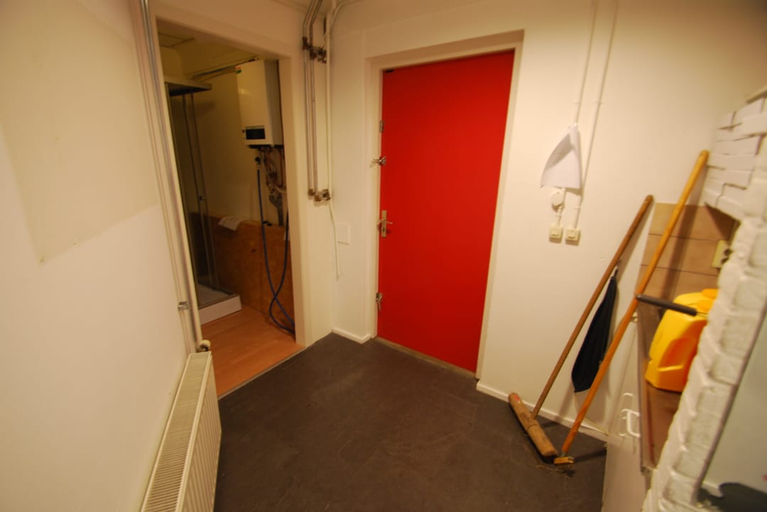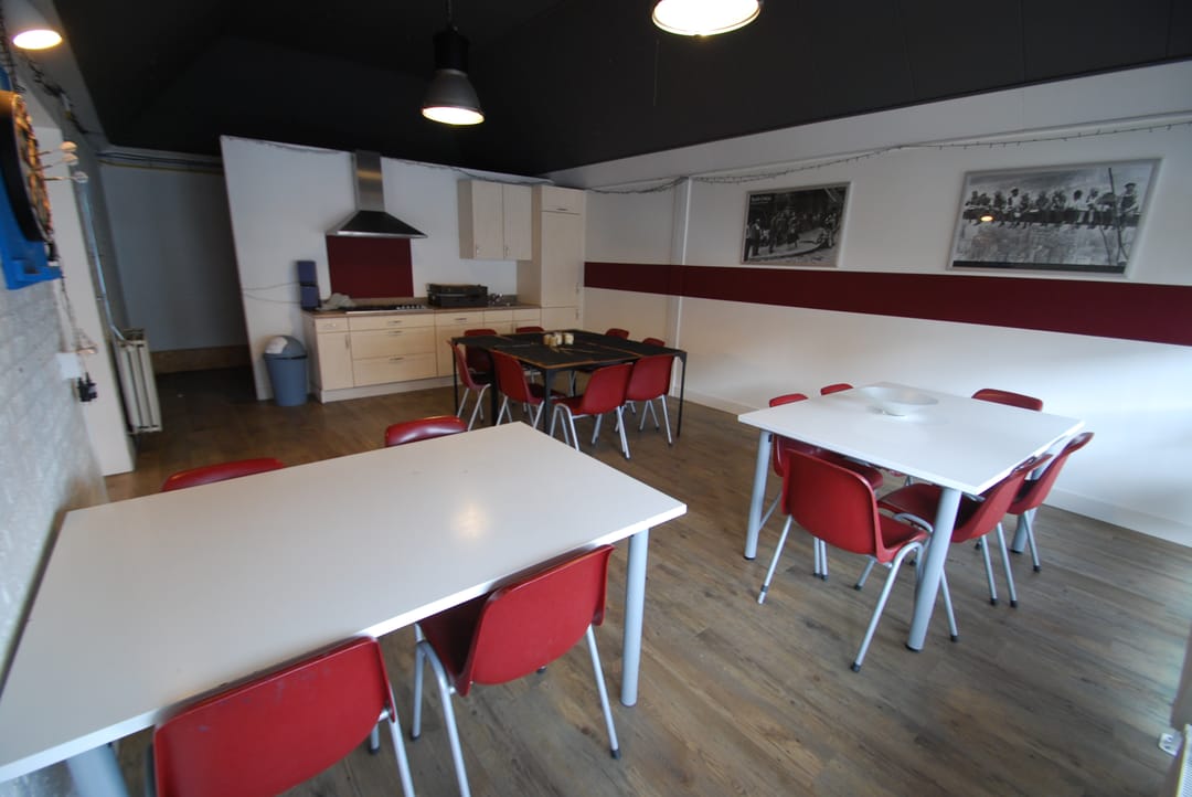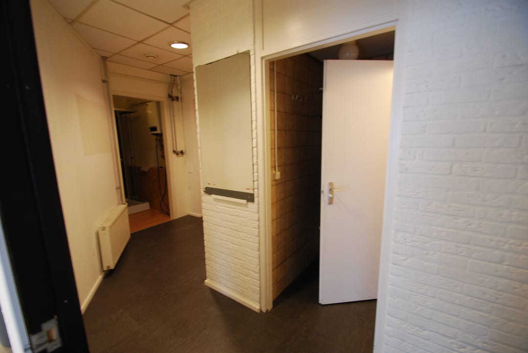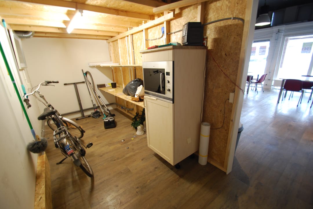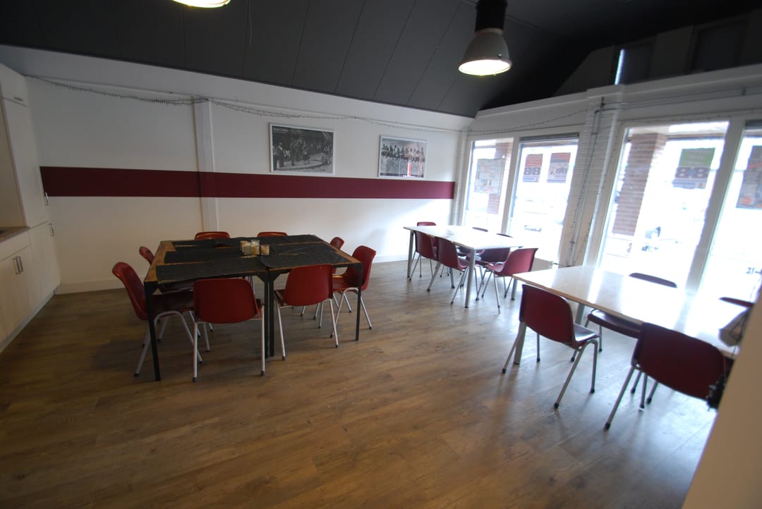 In 2000 is het interieur volledig gemoderniseerd, geisoleerd en nieuw gestoffeerd. Links: Entree ruimte nu voorzien van grote balie, deze is echter eenvoudig te verwijderen. Separaat aan de achterzijde een pantry, toilet, badkamer en deur naar achterplaats met eigen parkeer/ opslagruimte. Rechterzijde nu met luxe keuken en opslag materieel, open ruimte te maken van 4,8 x 8,6 m. Tevens een deur naar de achterplaats.